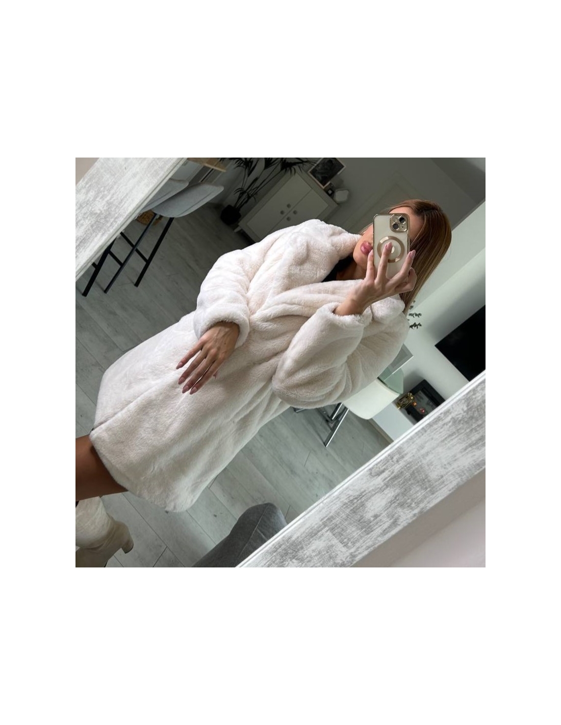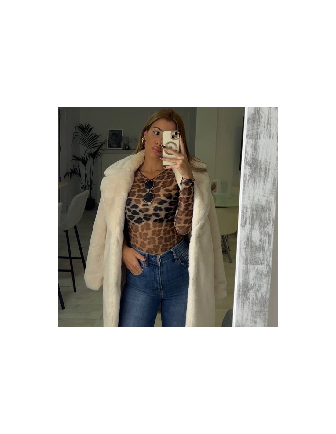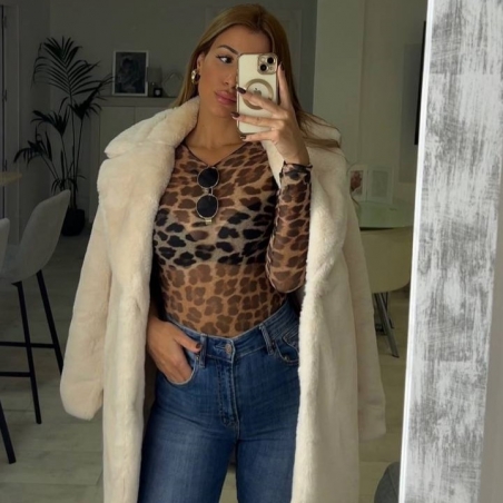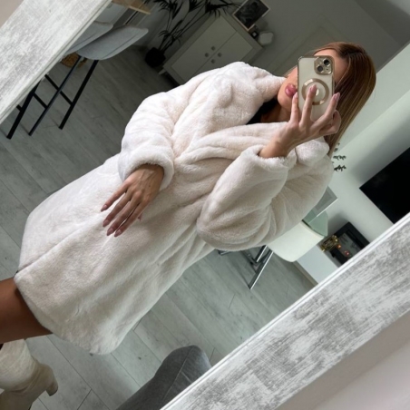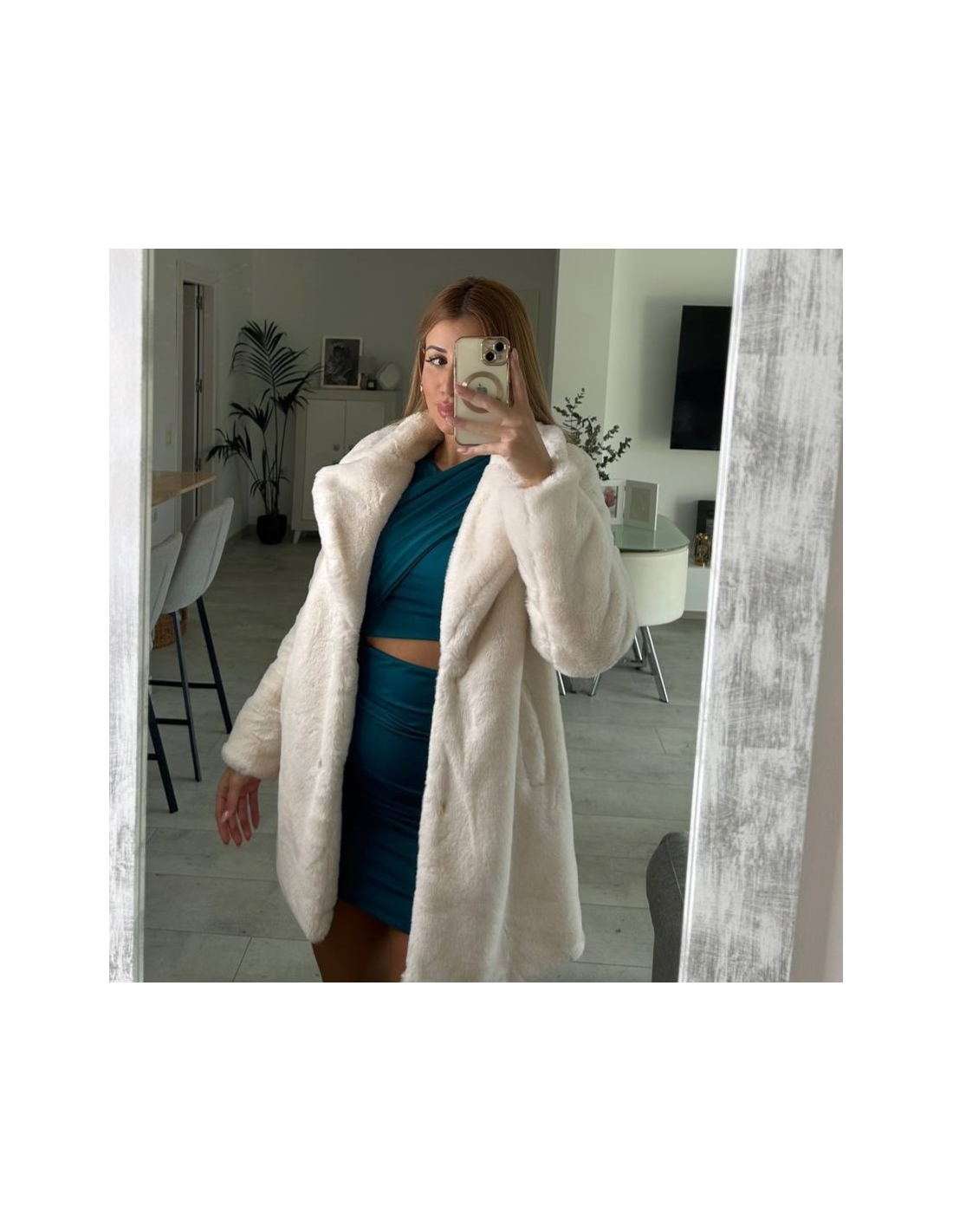 Abrigo de pelito crema con forro interior a tono. Cuello de solapa. Cierre delantero con botón. Talla única.