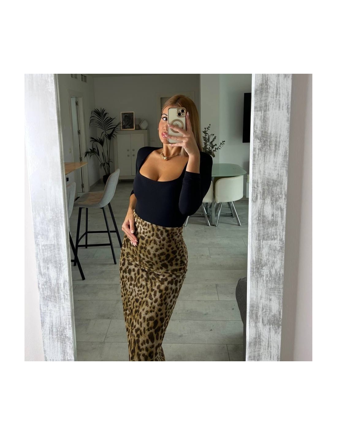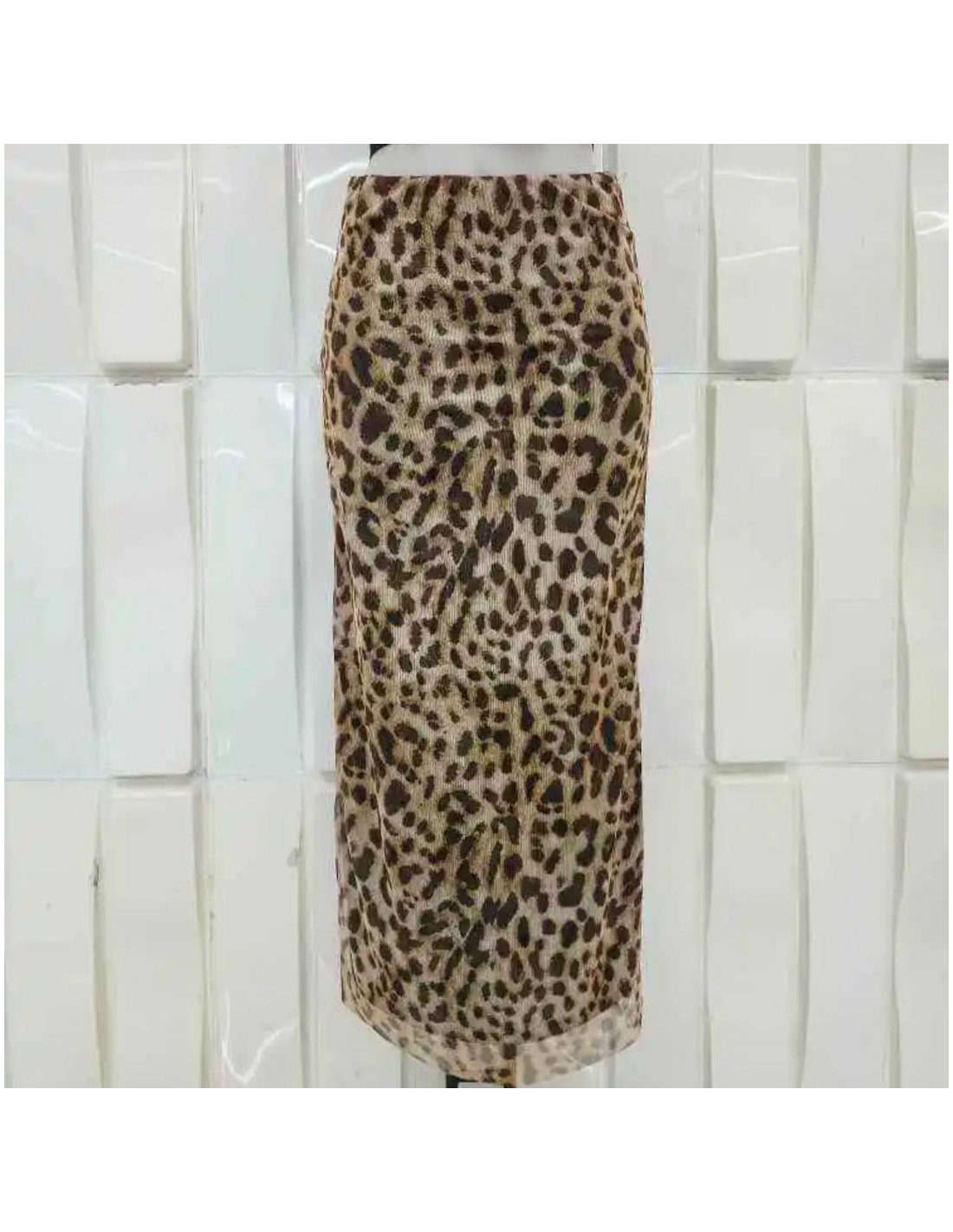 Falda midi tul con estampado animal print. Con forro interior a tono. De tiro alto. Cintura elástica. Talla única