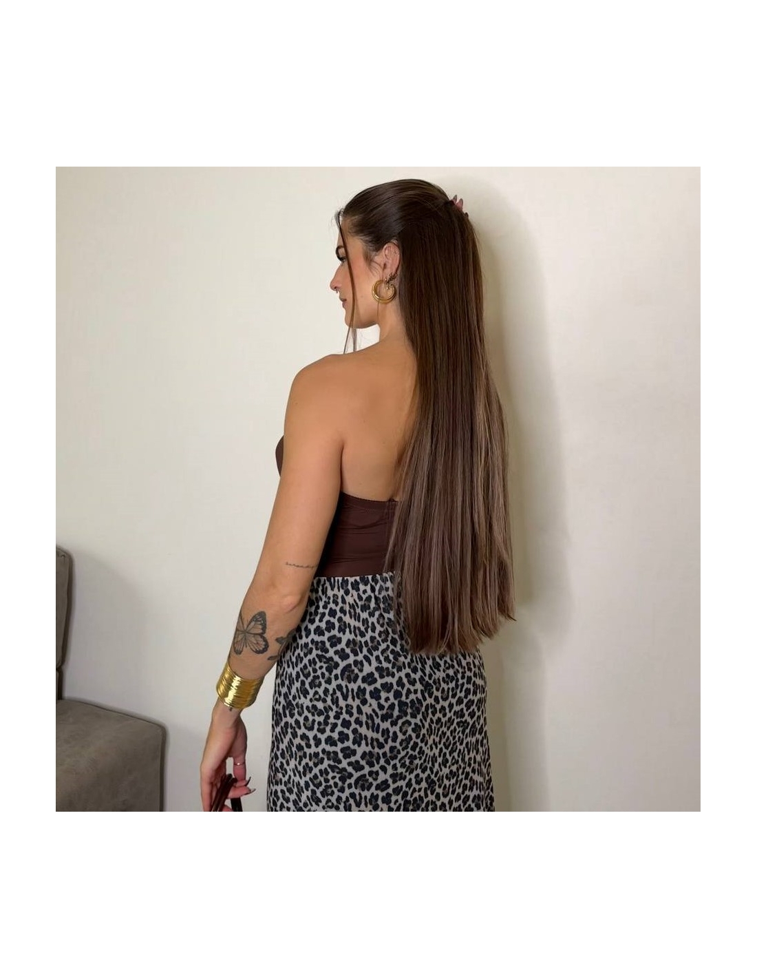 Falda midi tul con estampado animal print. Con forro interior a tono. De tiro alto. Cintura elástica. Talla única