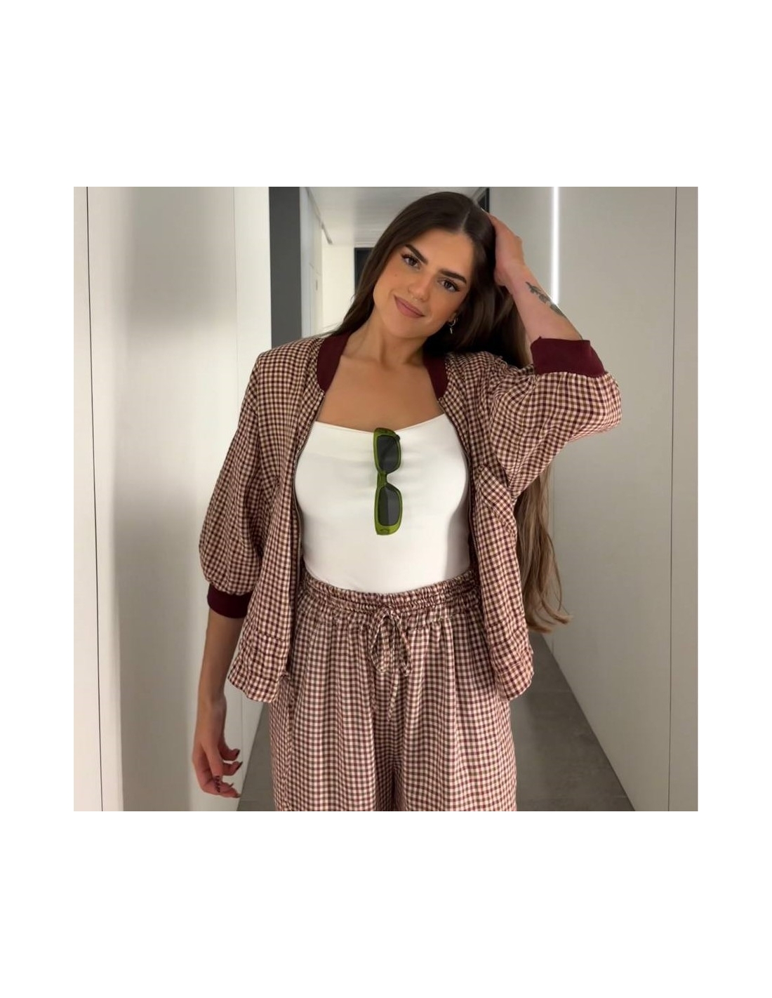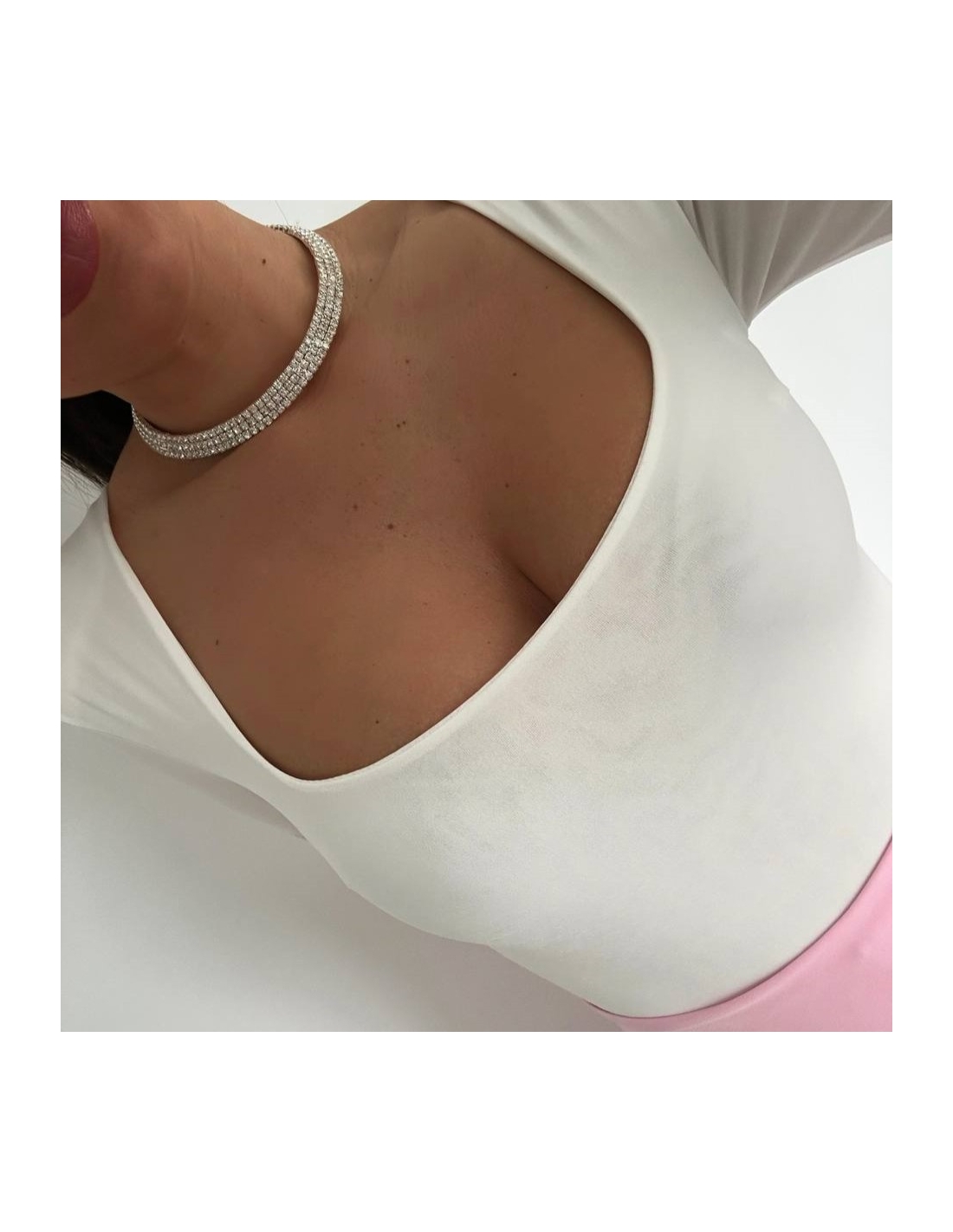 Top hombreras ajustado de manga larga. Escote recto. Doble tejido. Talla única