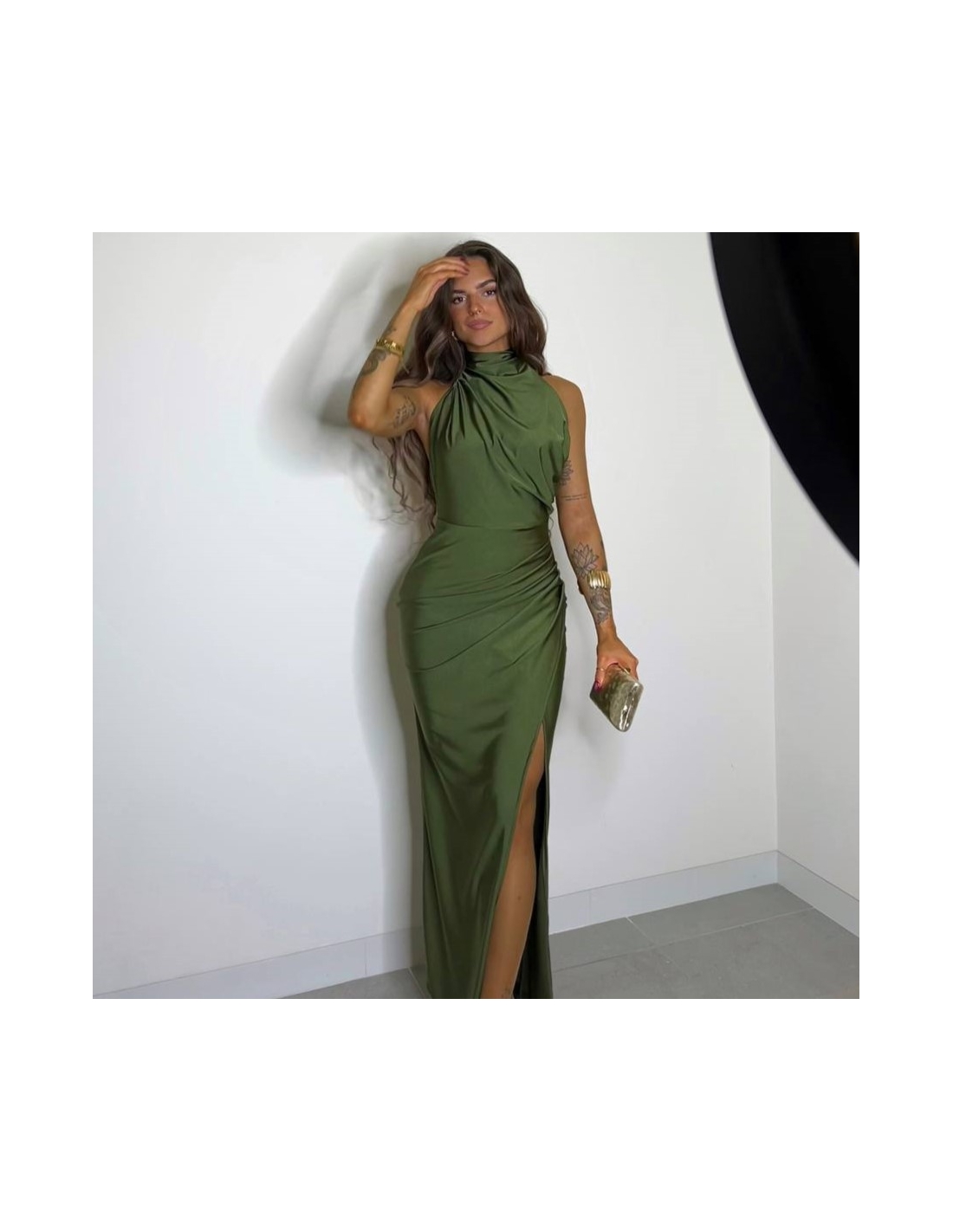 Vestido halter con lazada trasera y tejido acabado satinado. Lazada a tono. Fruncido en parte delantera y abertura. Elástico. Talla única.
