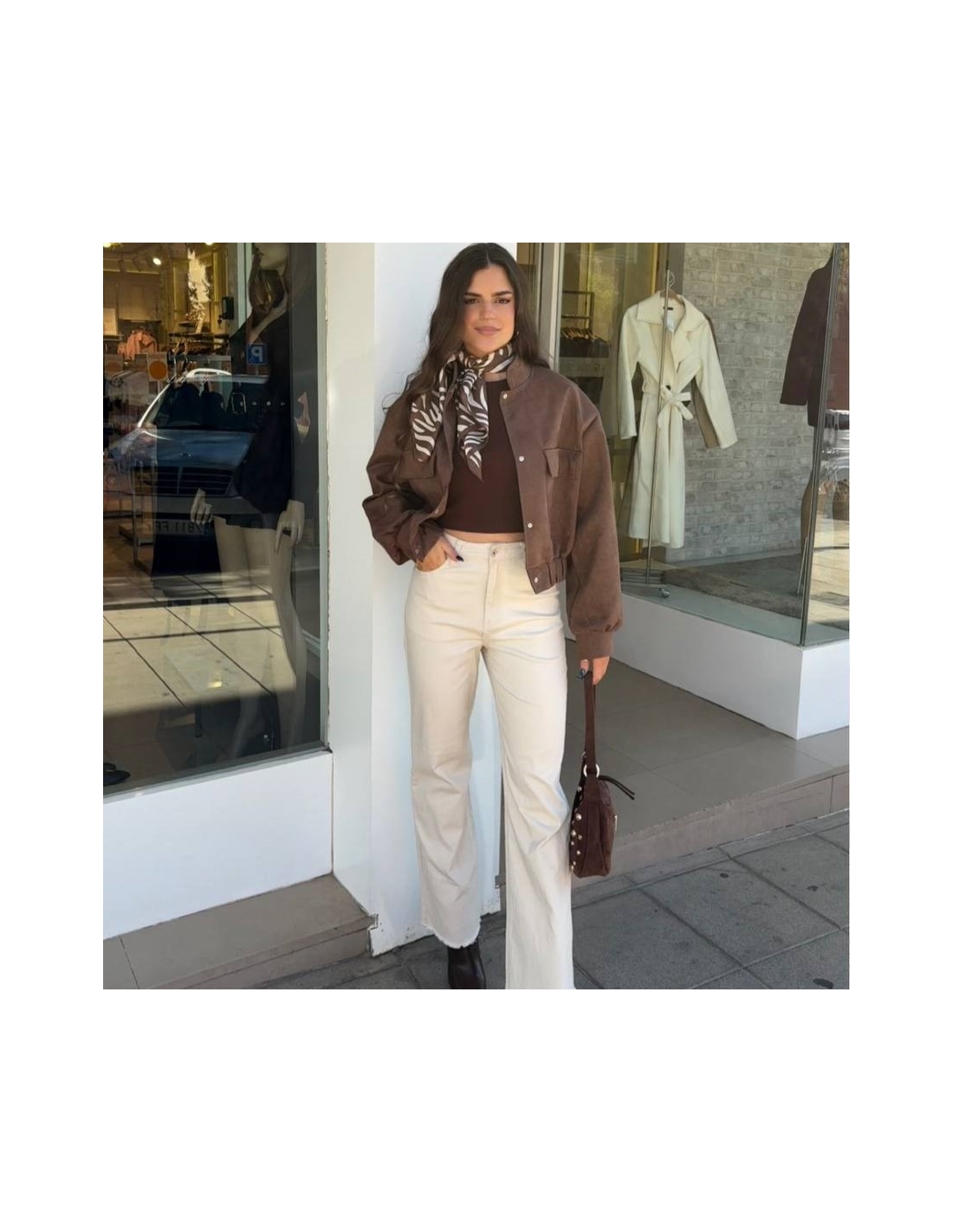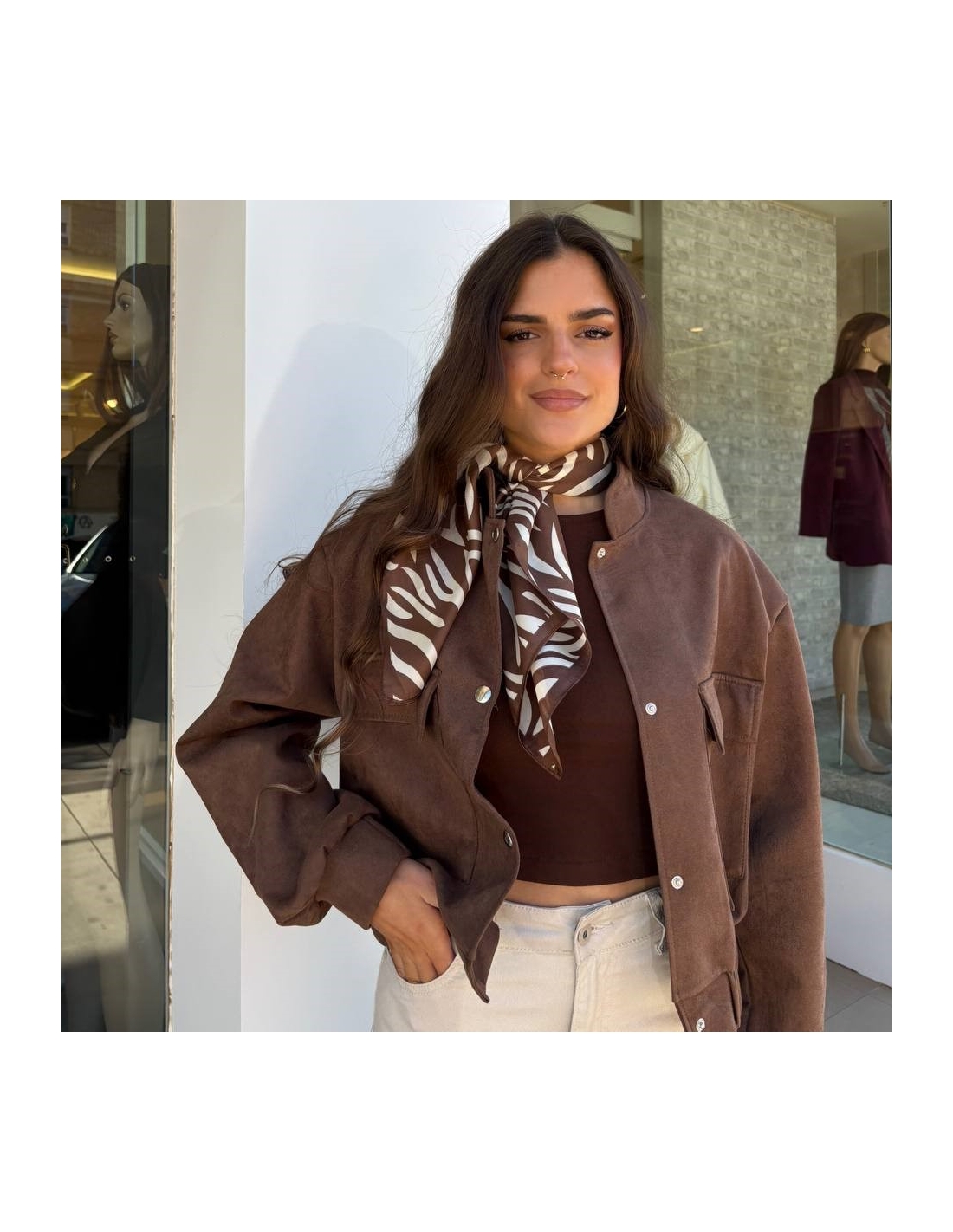 Chaqueta tipo bomber de antelina. Cierre abotonado. Talla única.