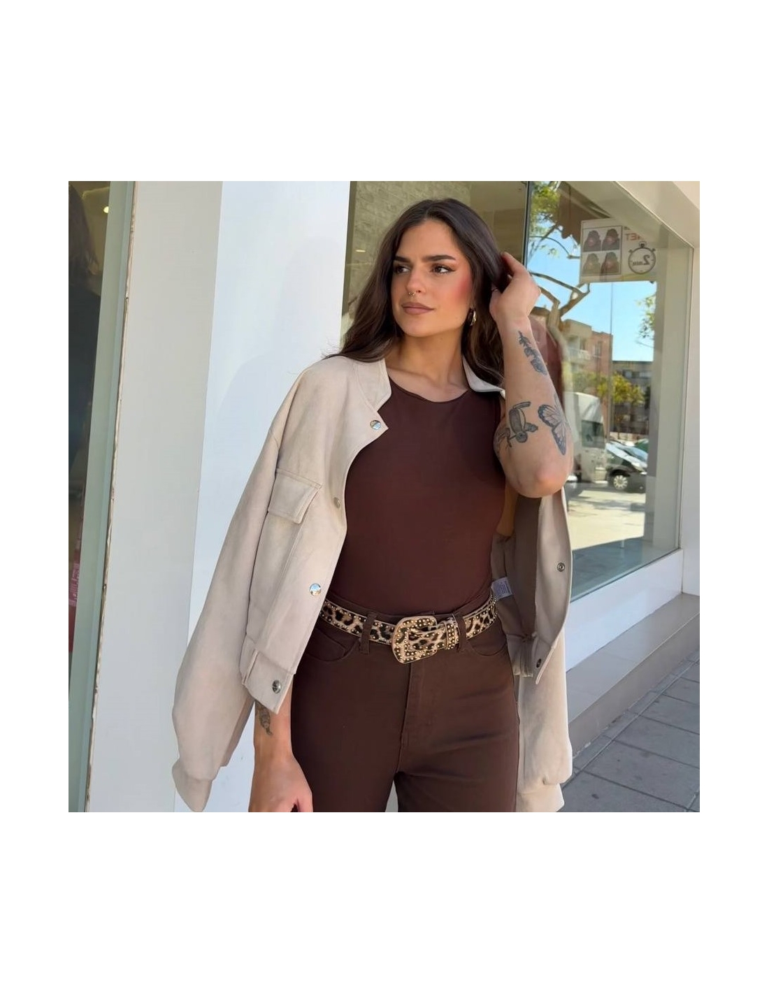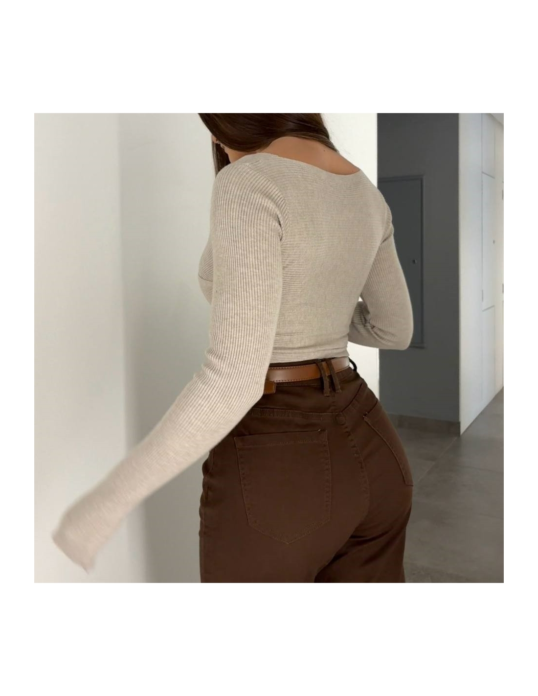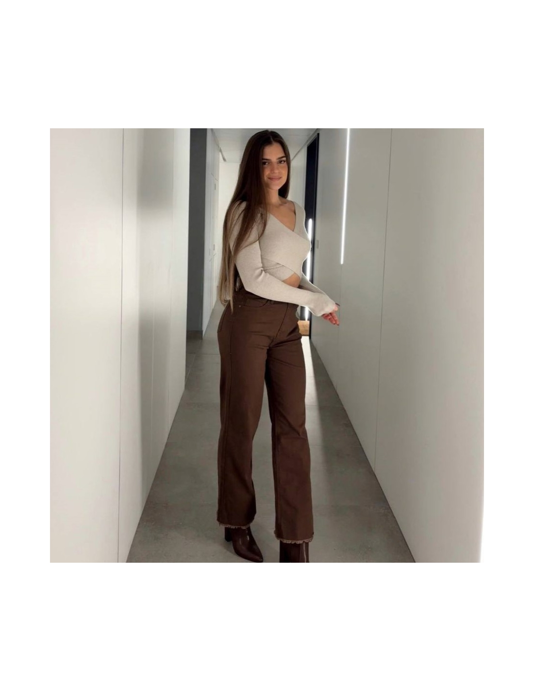 Pantalón campana de tiro alto. Elástico. Con bolsillos. Cierre delantero con cremallera y botón. Cinturón no incluído.
