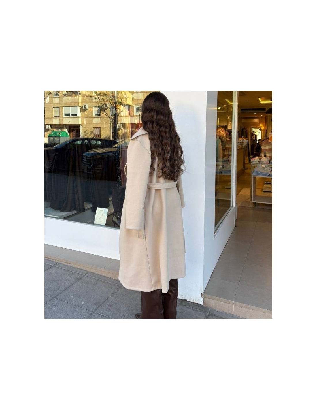 Abrigo paño largo. Con cinturón a tono. De manga larga. Cuello de solapa. Talla única