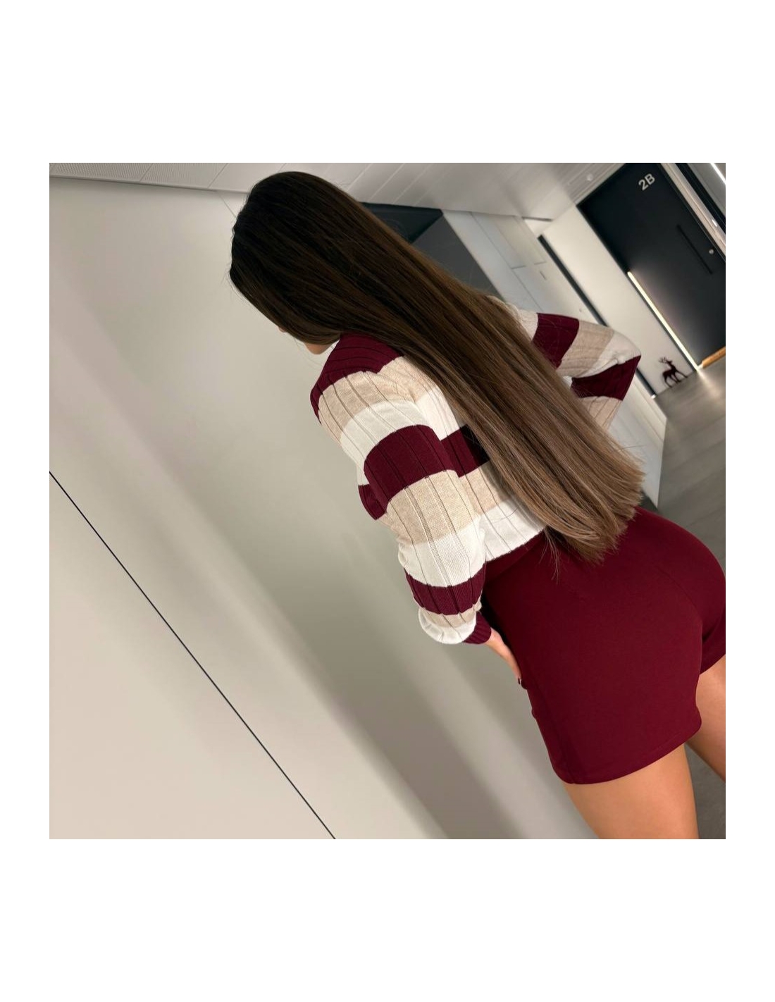 Jersey de rayas manga larga. Cuello redondo. Elástico. Talla única