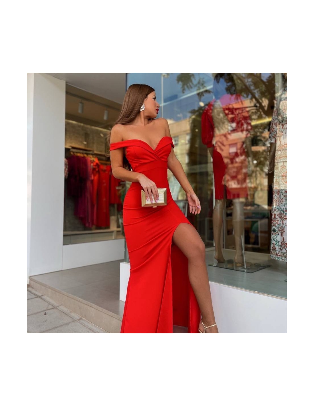 VESTIDO ESCOTE BARCO ROJO