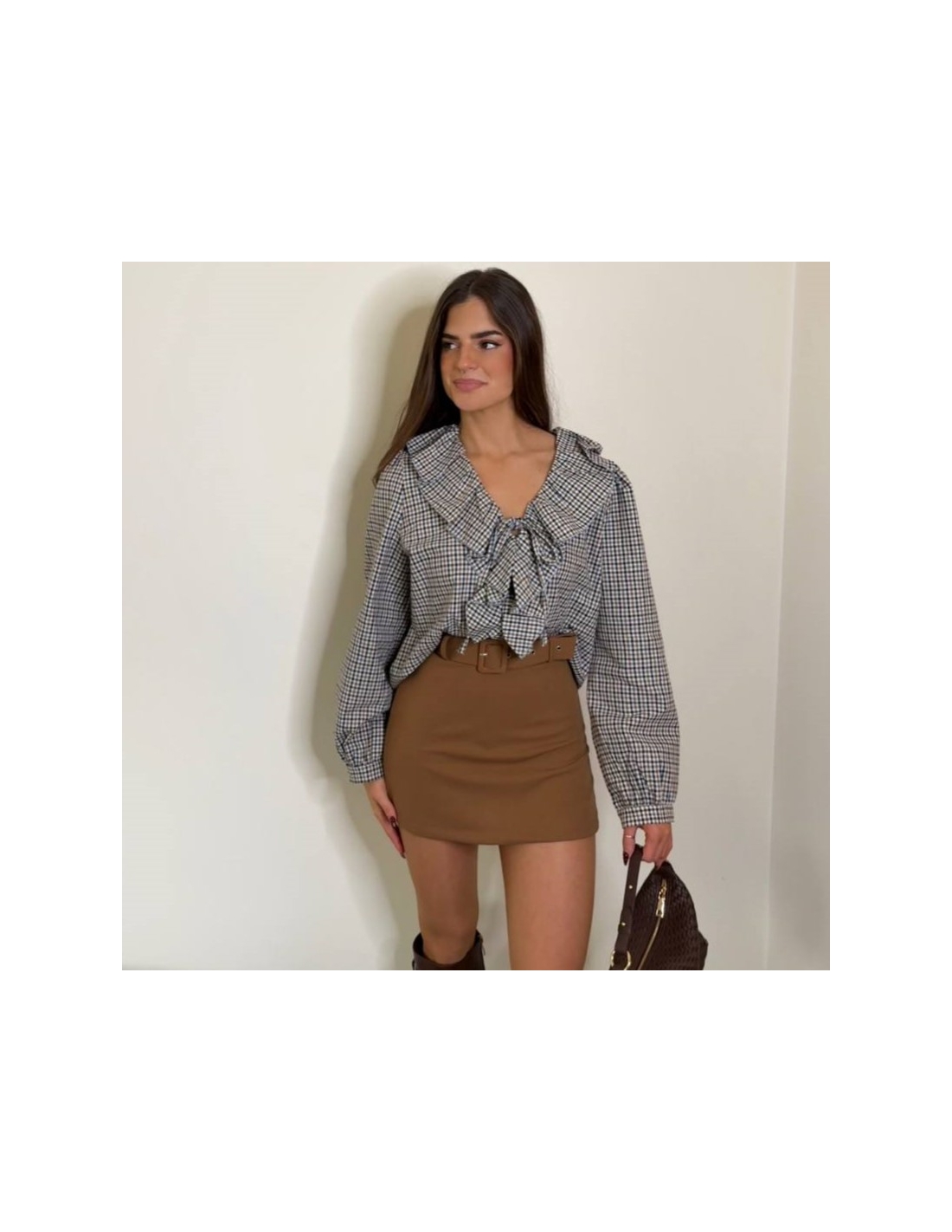 Falda pantalón de tiro alto con cinturón a tono. Elástica. Talla única