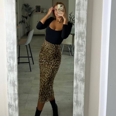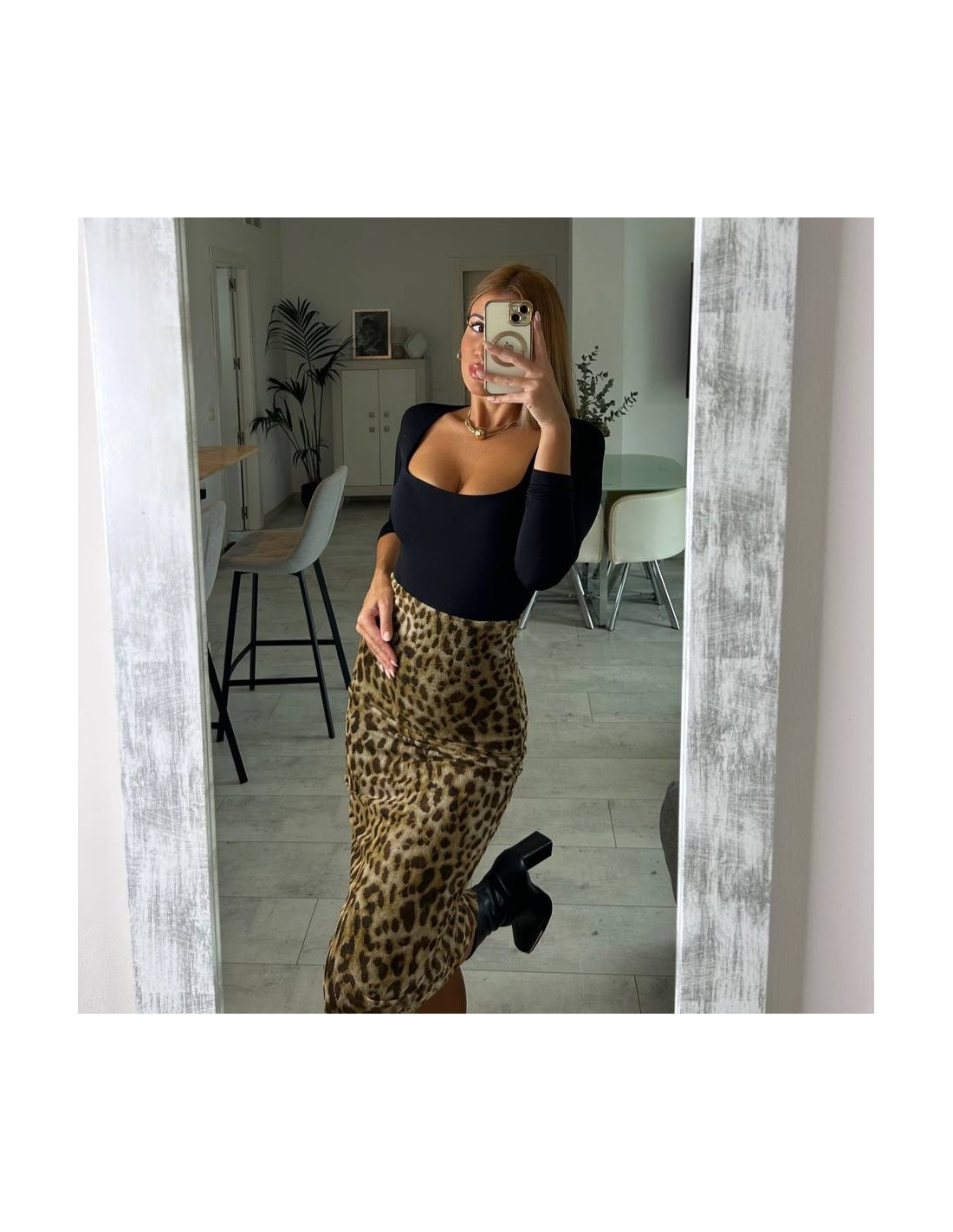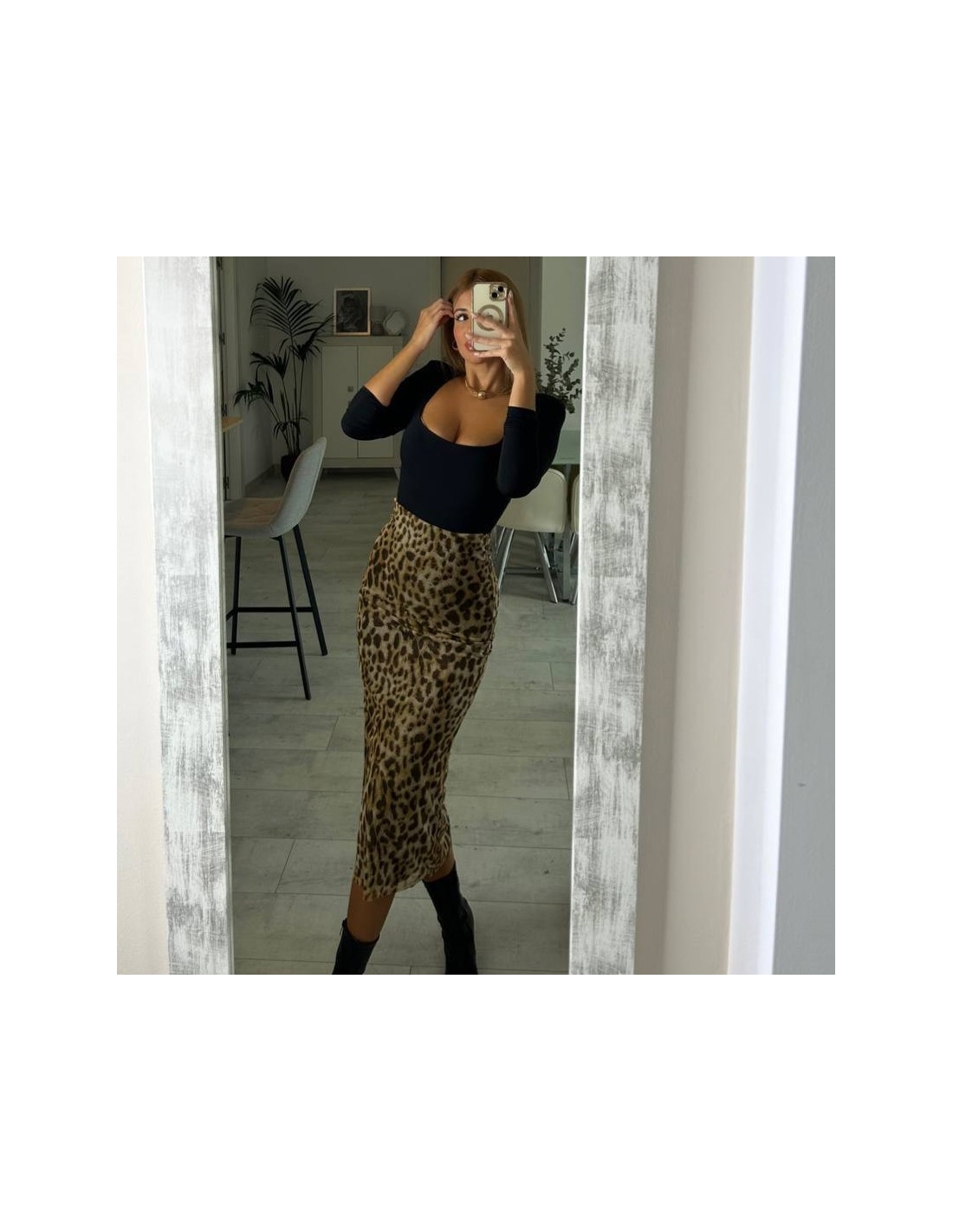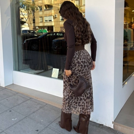 Falda midi tul con estampado animal print. Con forro interior a tono. De tiro alto. Cintura elástica. Talla única