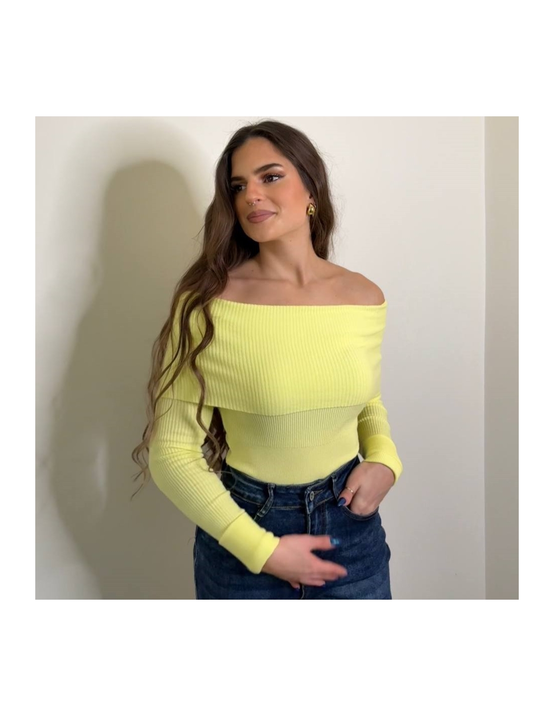 Jersey escote barco de punto. De manga larga. Elástico. Talla única.