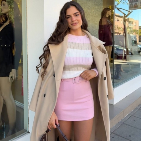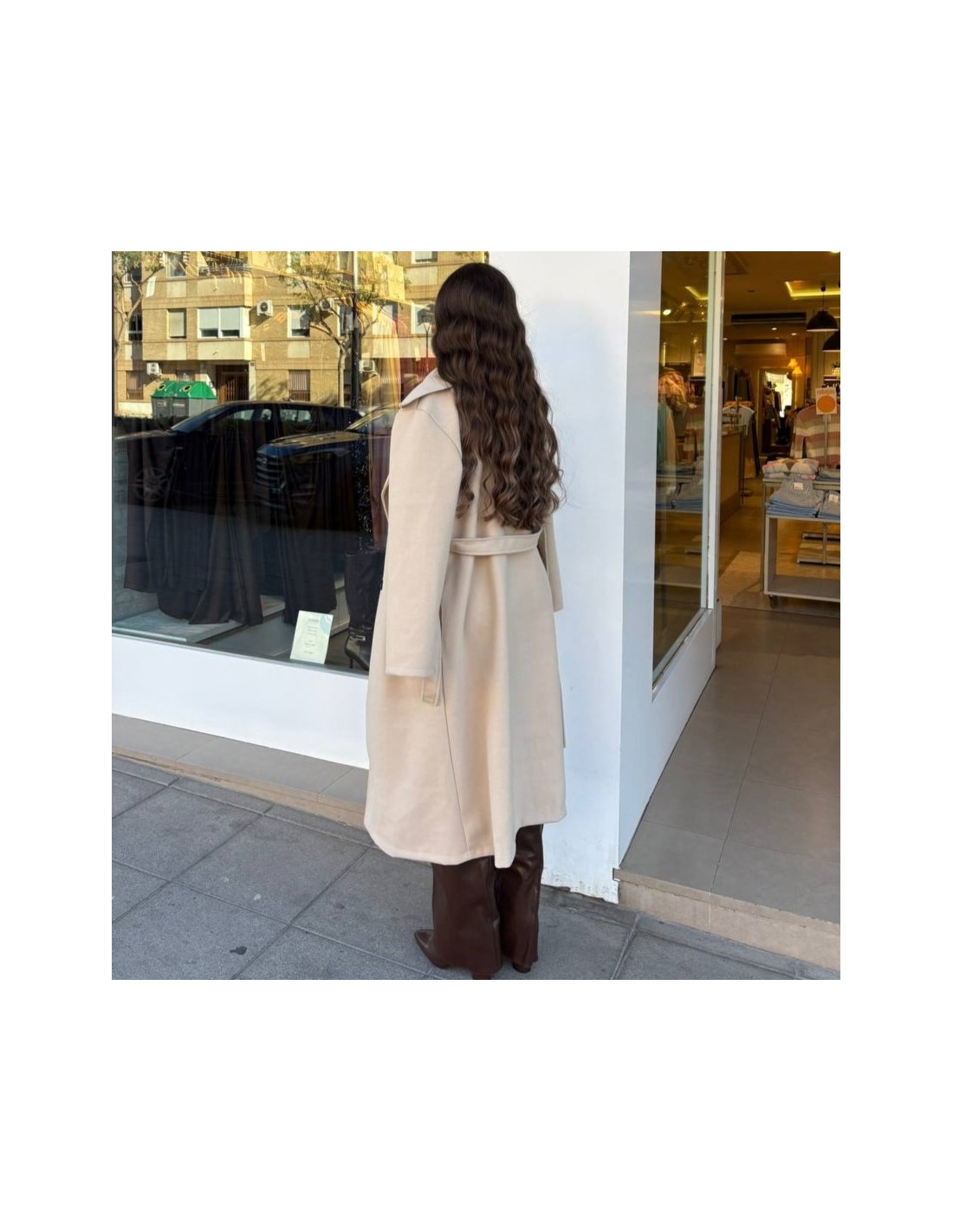 Abrigo paño largo. Con cinturón a tono. De manga larga. Cuello de solapa. Talla única