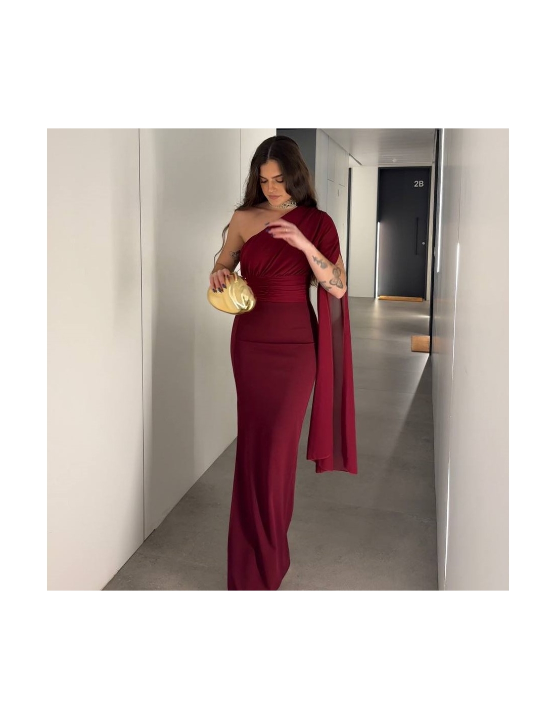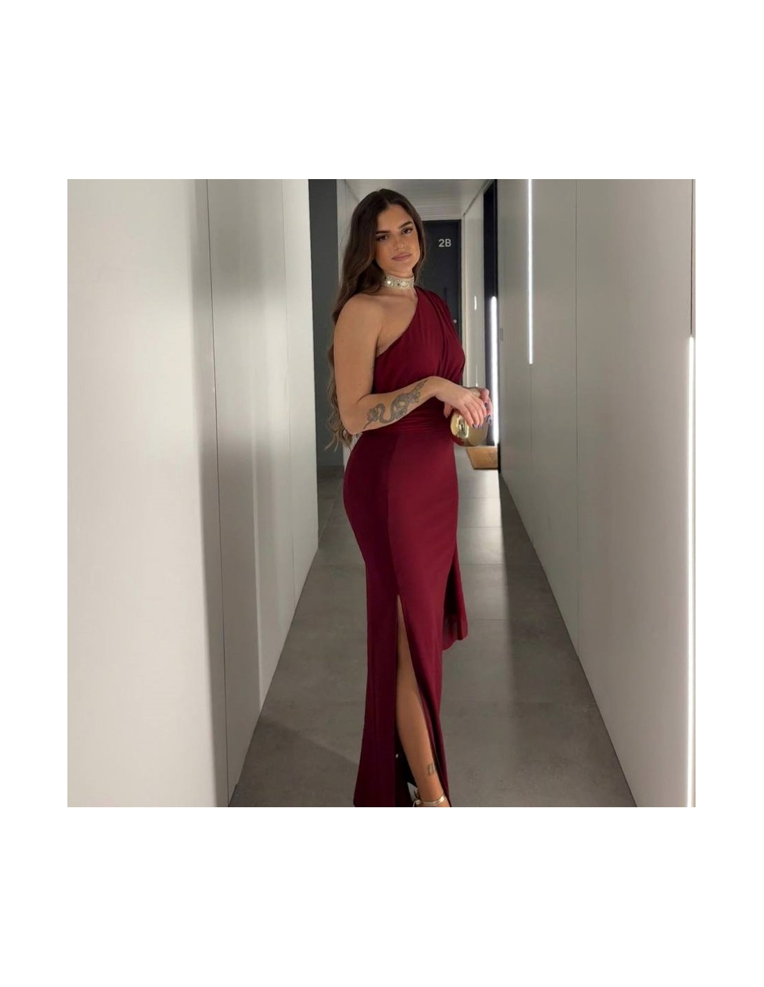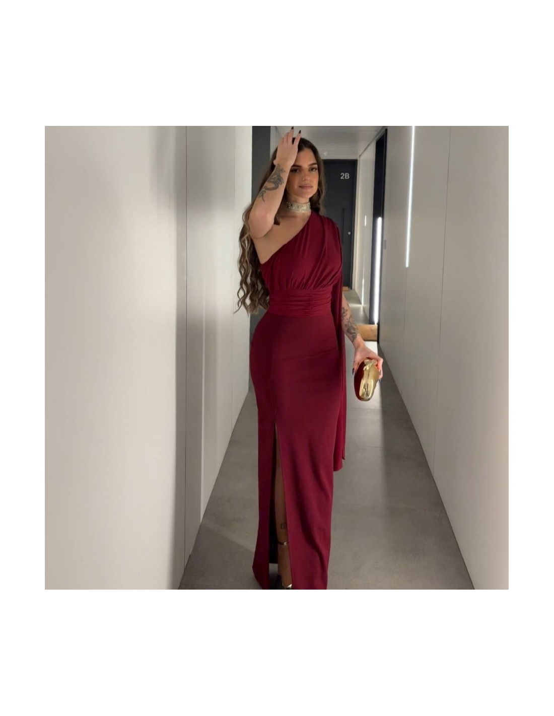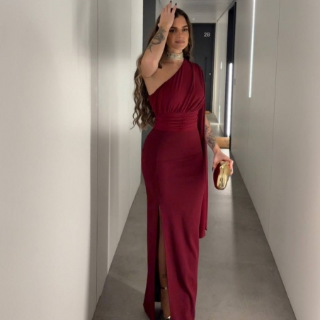 VESTIDO ASIMÉTRICO GASA VINO