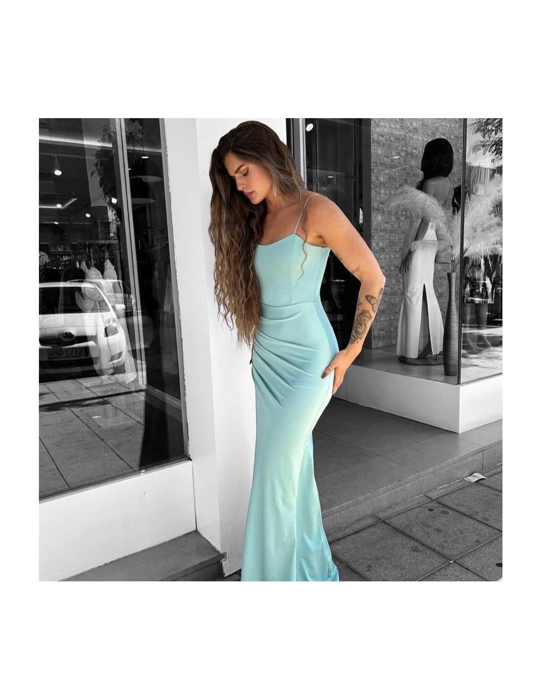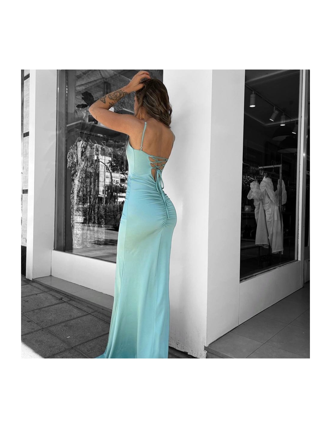 PREVENTA VESTIDO LARGO ESPALDA CRUZADA MENTA