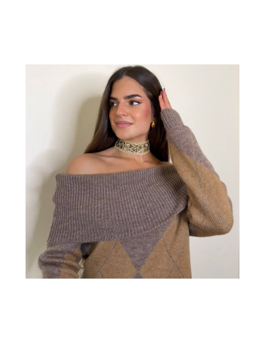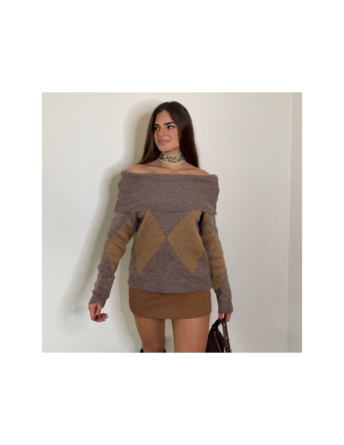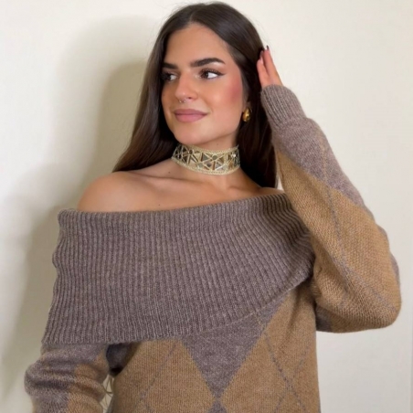 Jersey escote barco de rombos. Talla única.