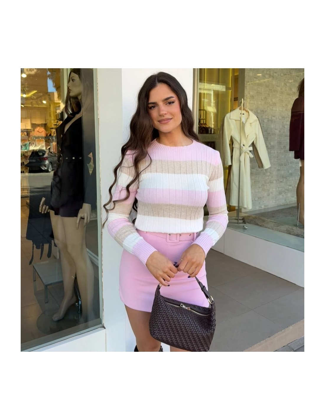 Jersey de rayas manga larga. Cuello redondo. Elástico. Talla única