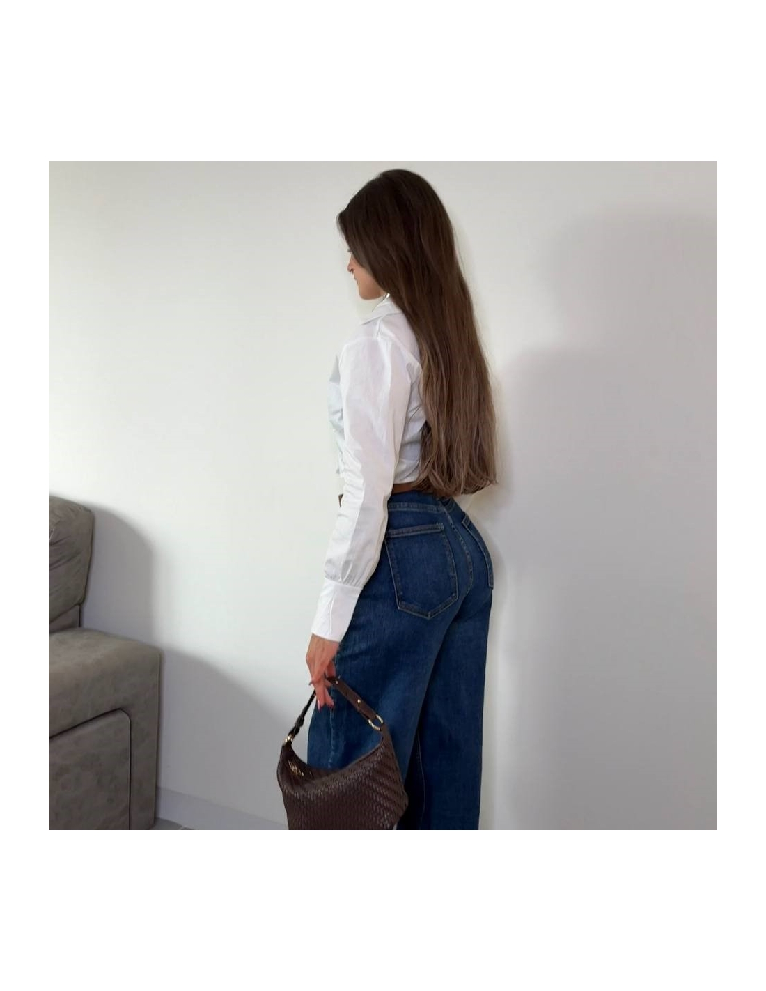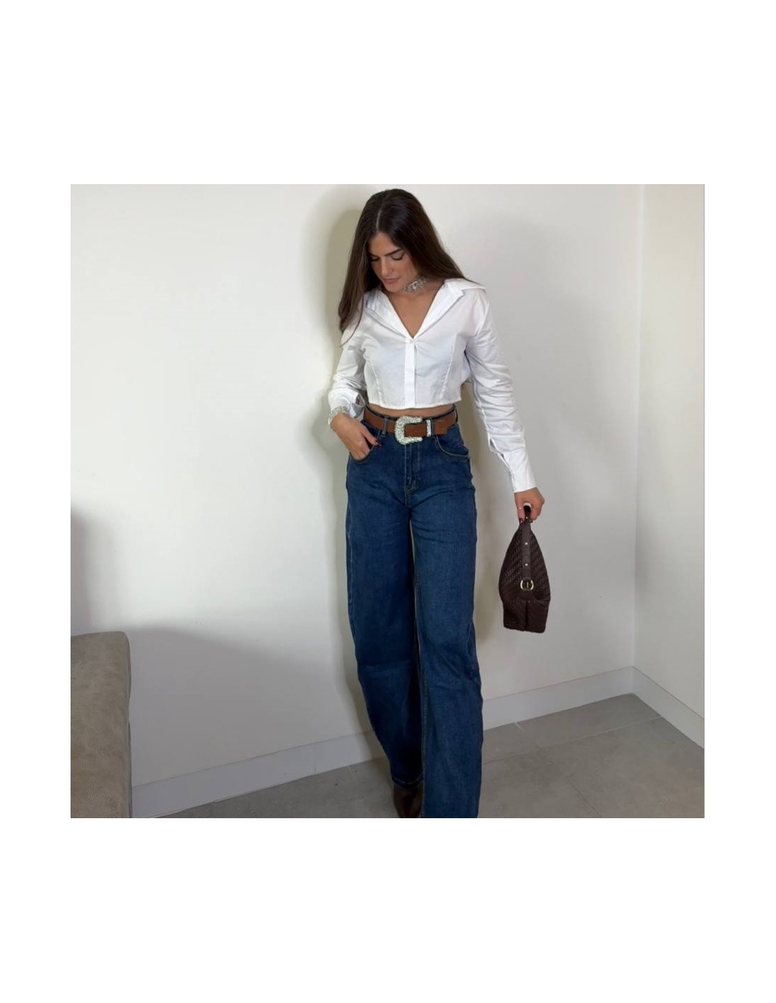 Jeans balloon tono oscuro. De tiro alto.