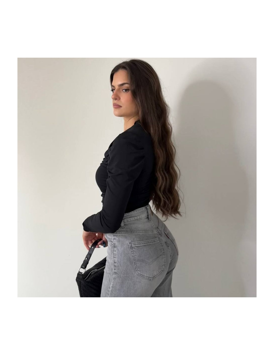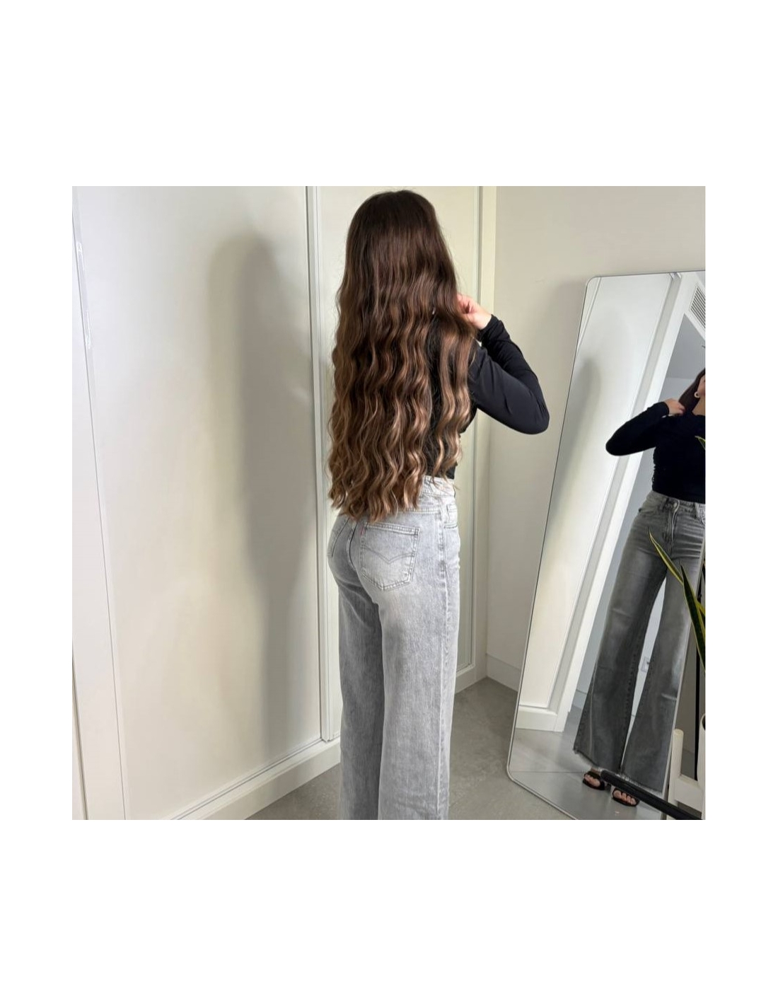 Jeans efecto lavado de tiro alto. Bajo desflecado.