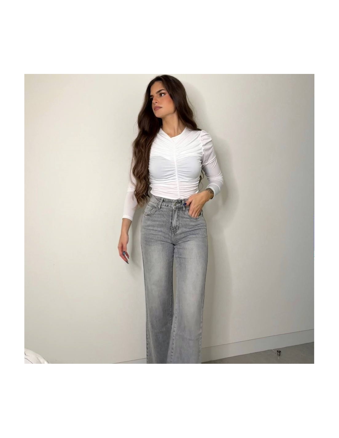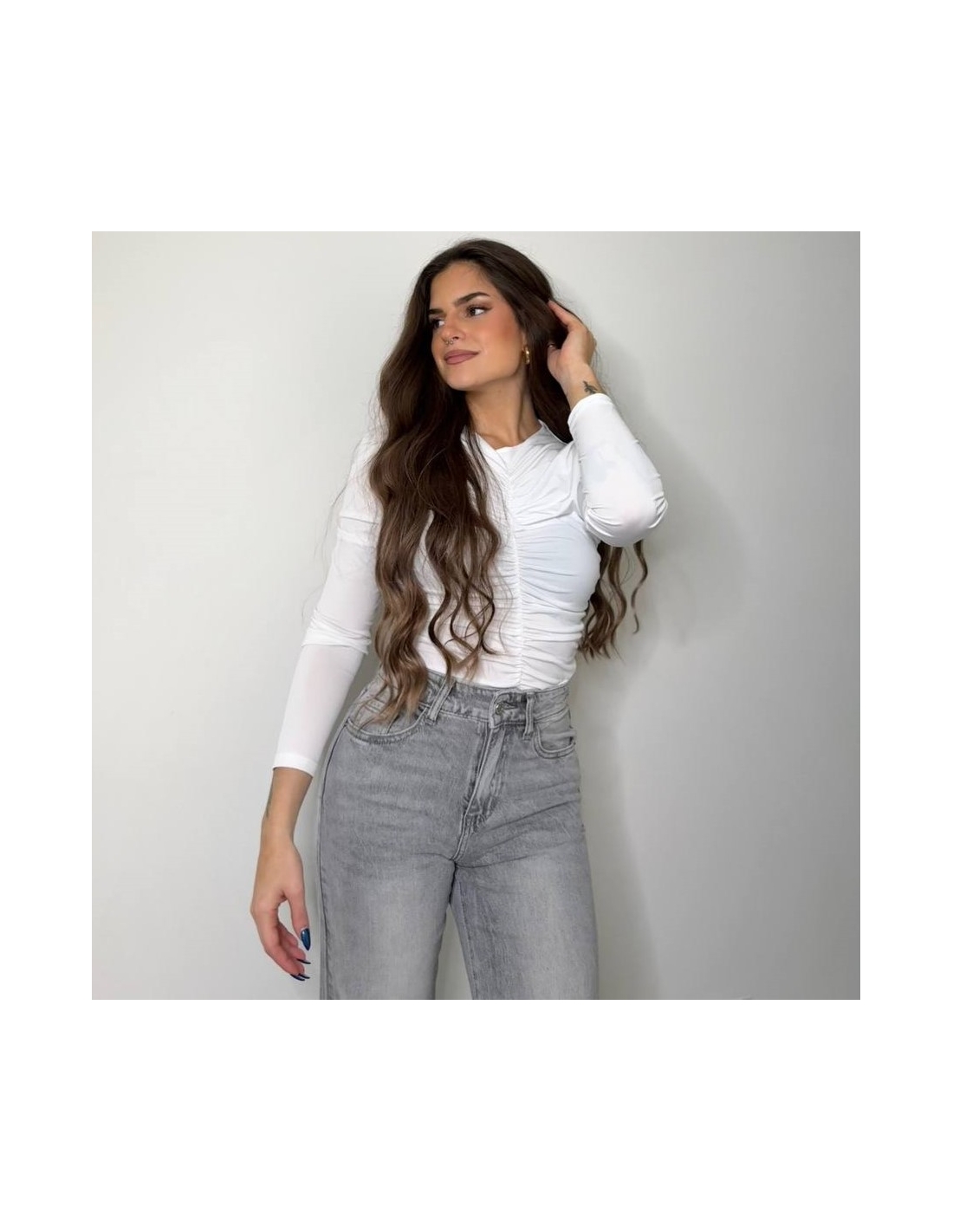 Top fruncido manga larga. Talla única.