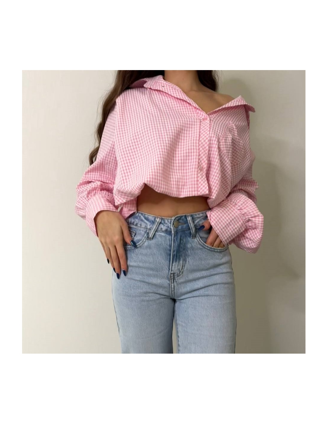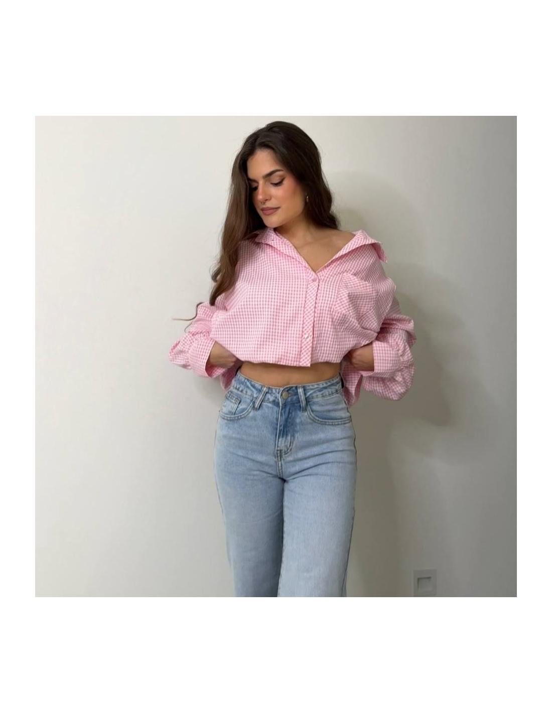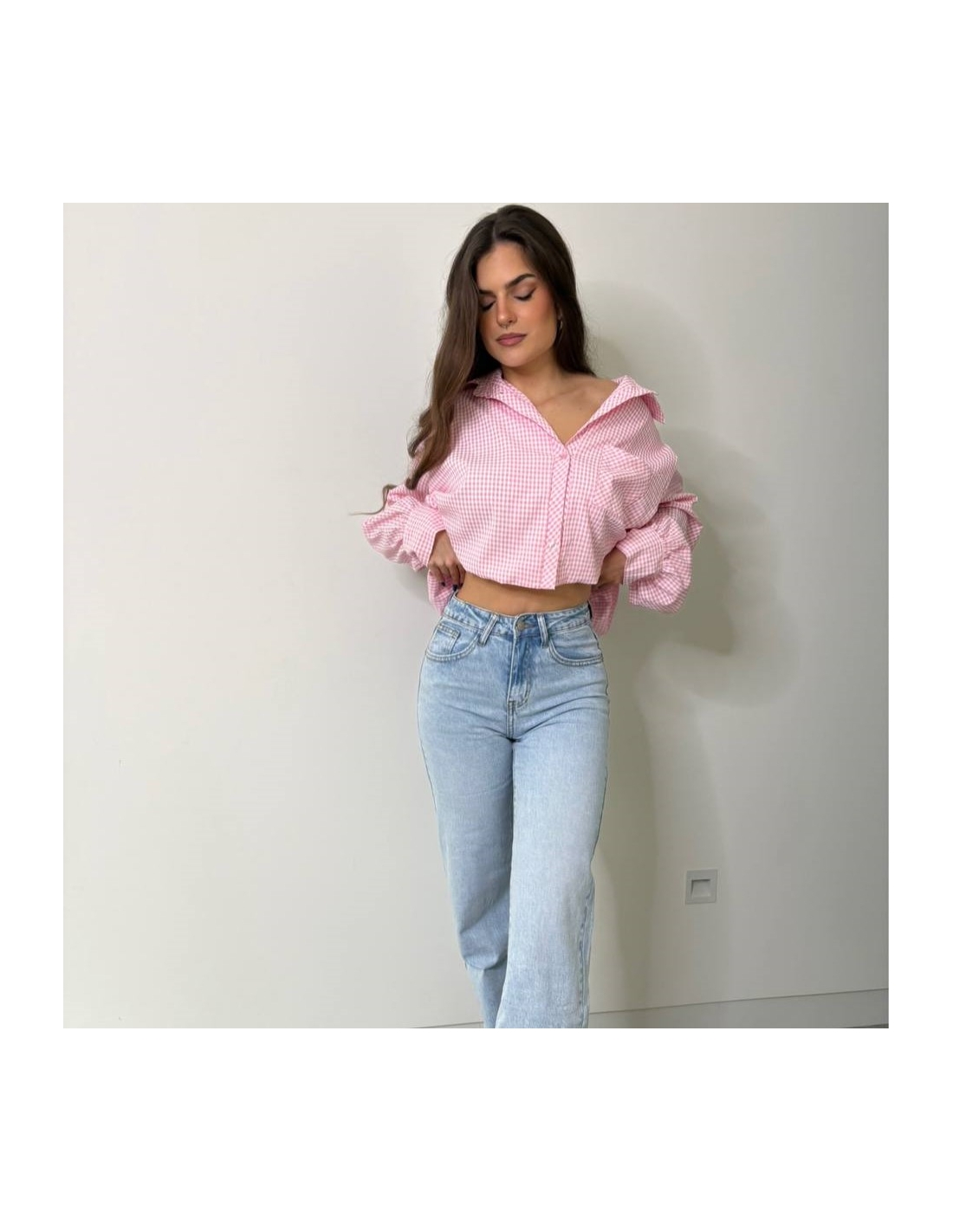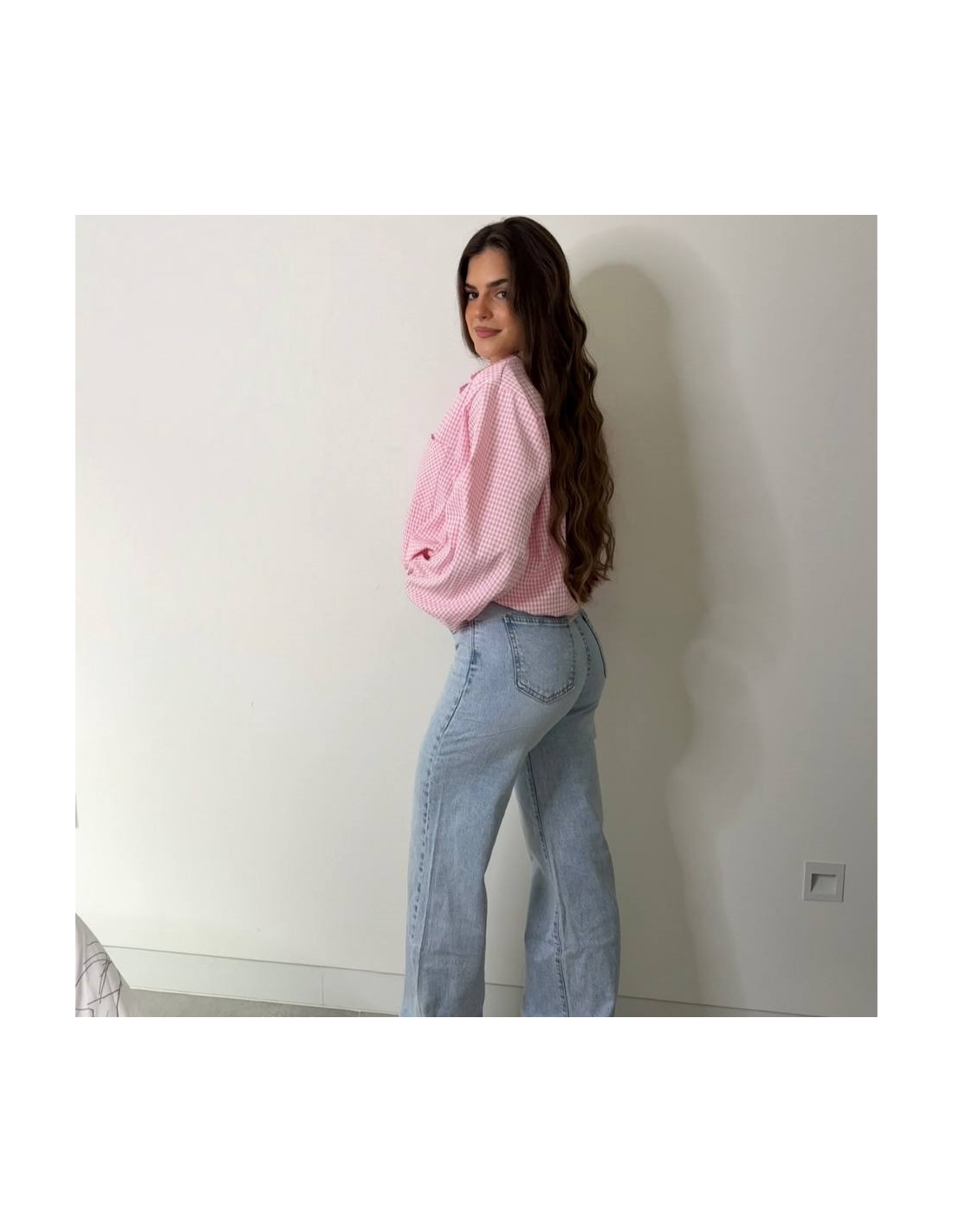 Jeans de tiro alto en tono clarito.