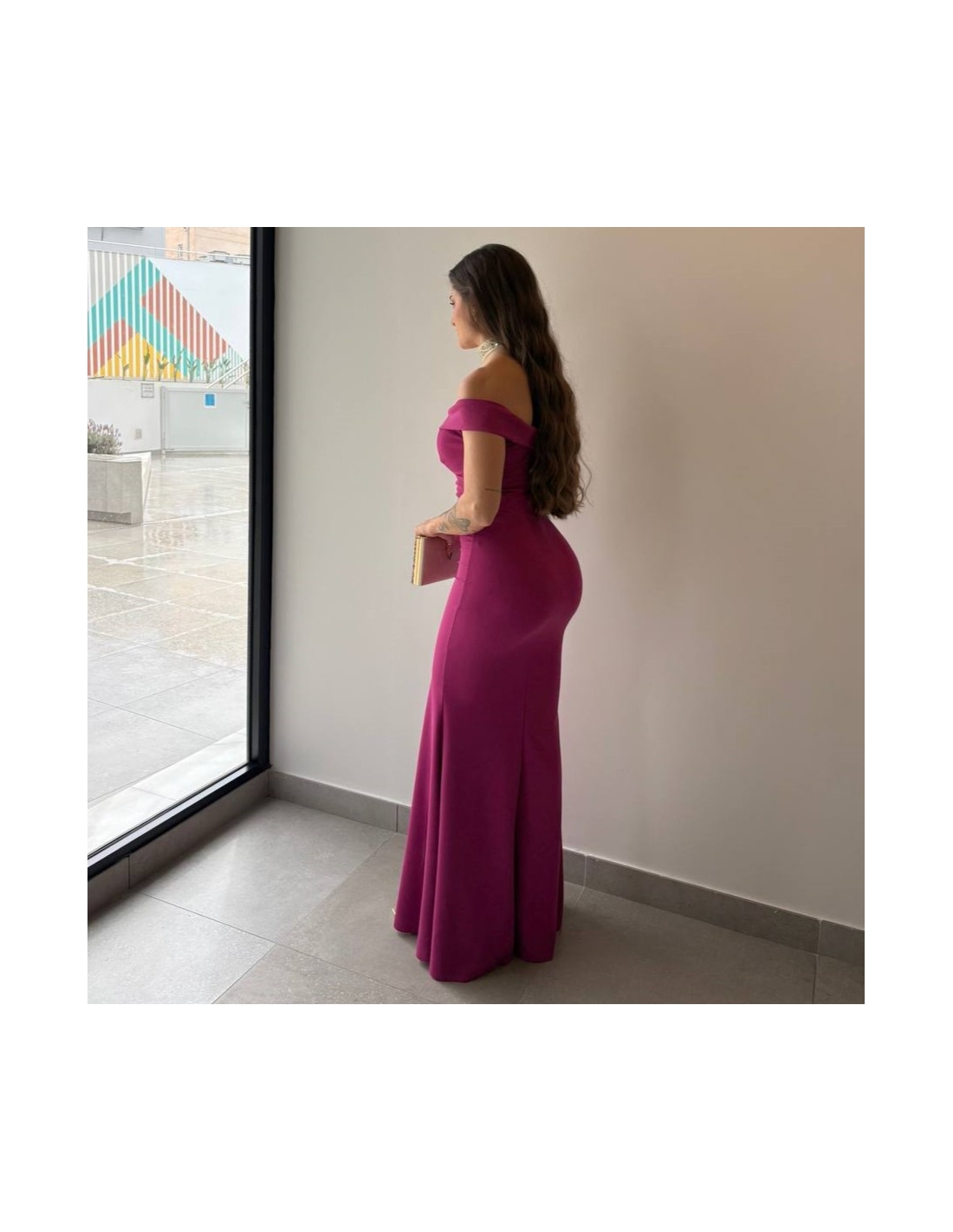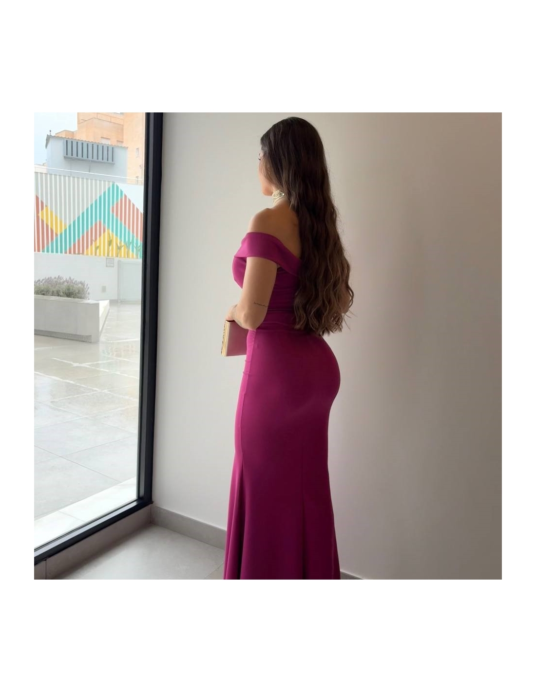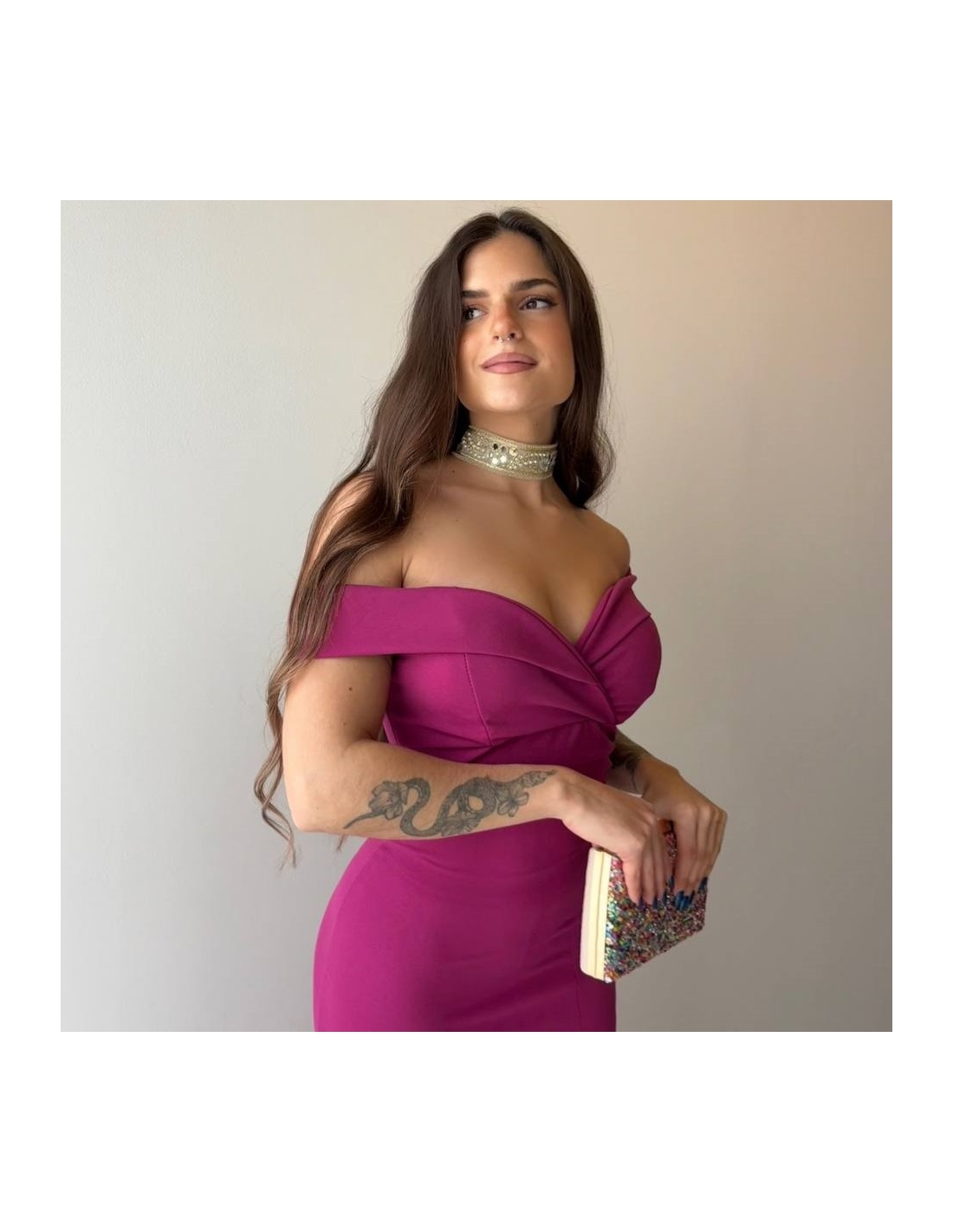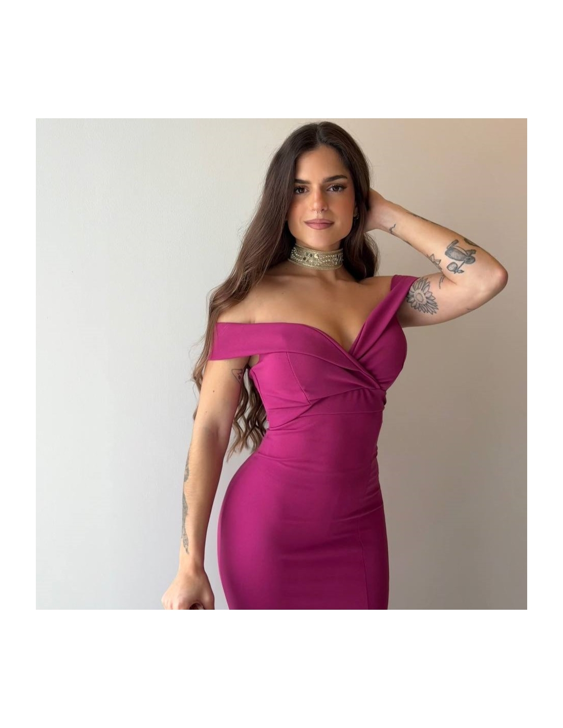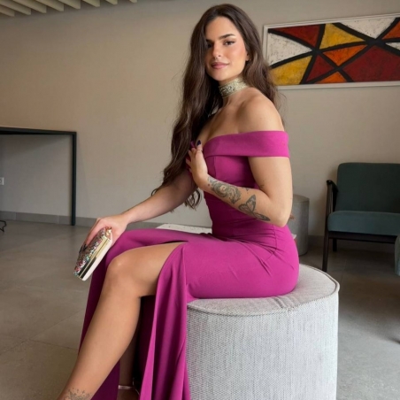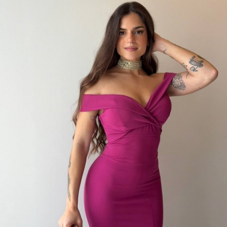 VESTIDO ESCOTE BARCO MAGENTA