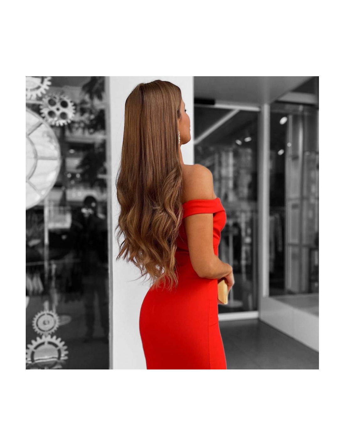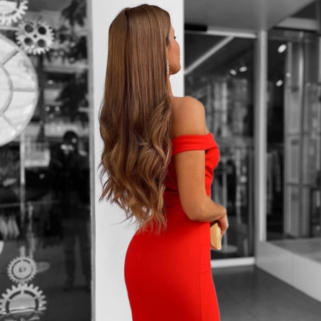 VESTIDO ESCOTE BARCO ROJO
