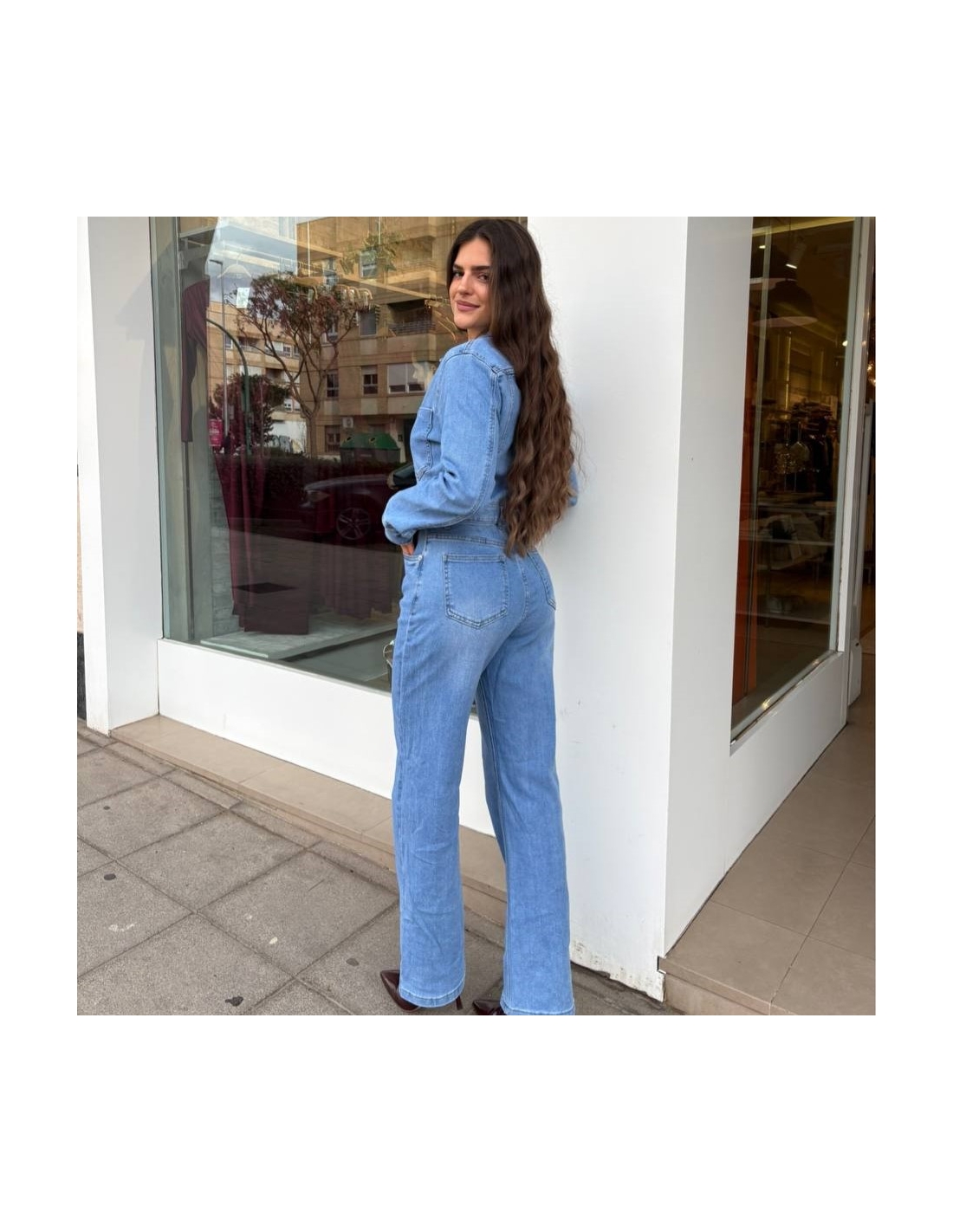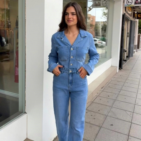 Mono largo denim abotonado.