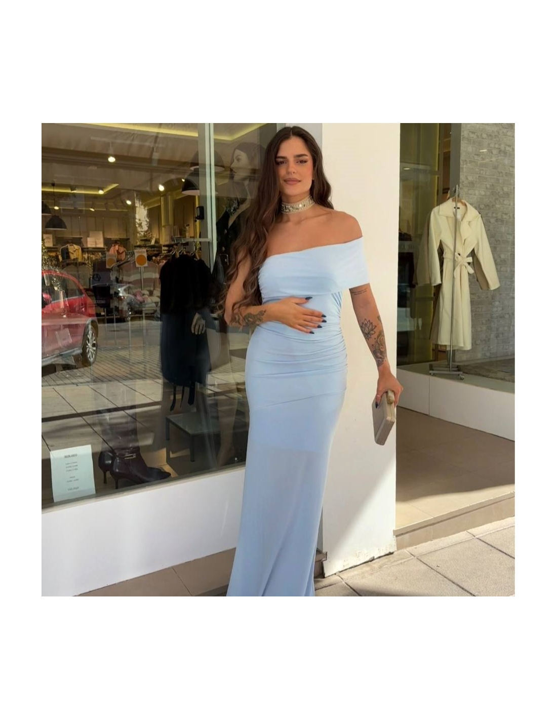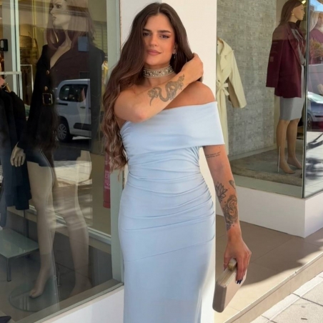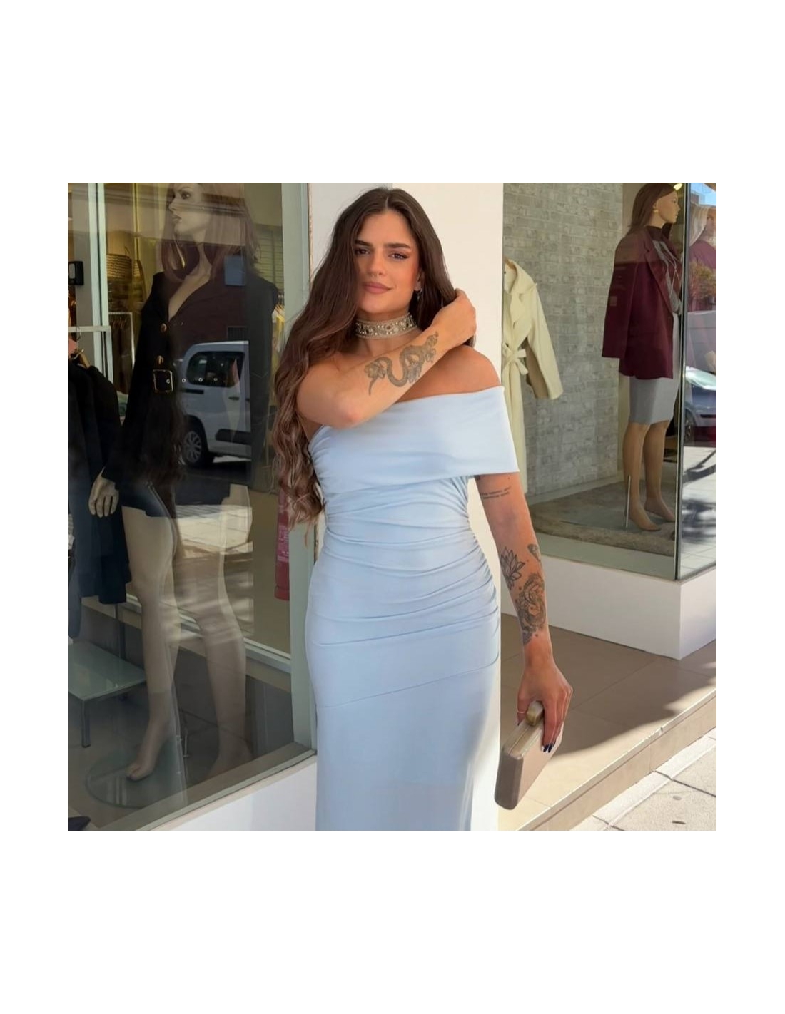 VESTIDO FRUNCIDO ASIMÉTRICO CELESTE