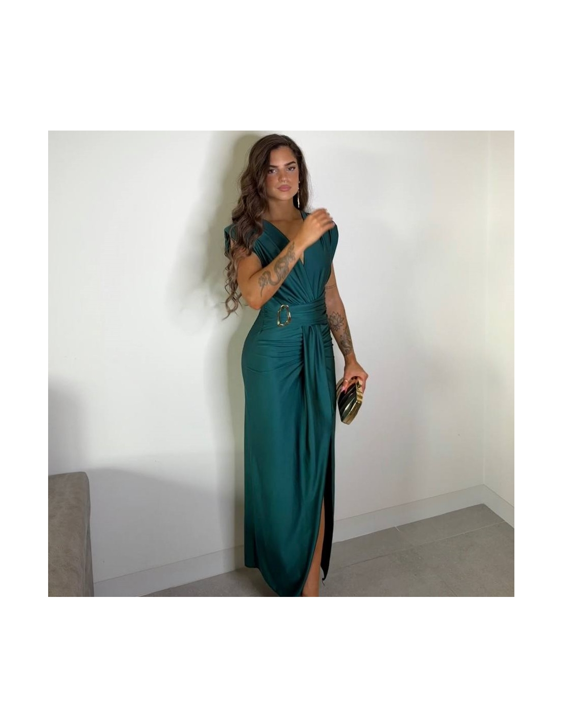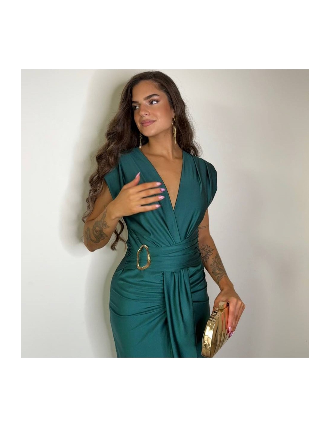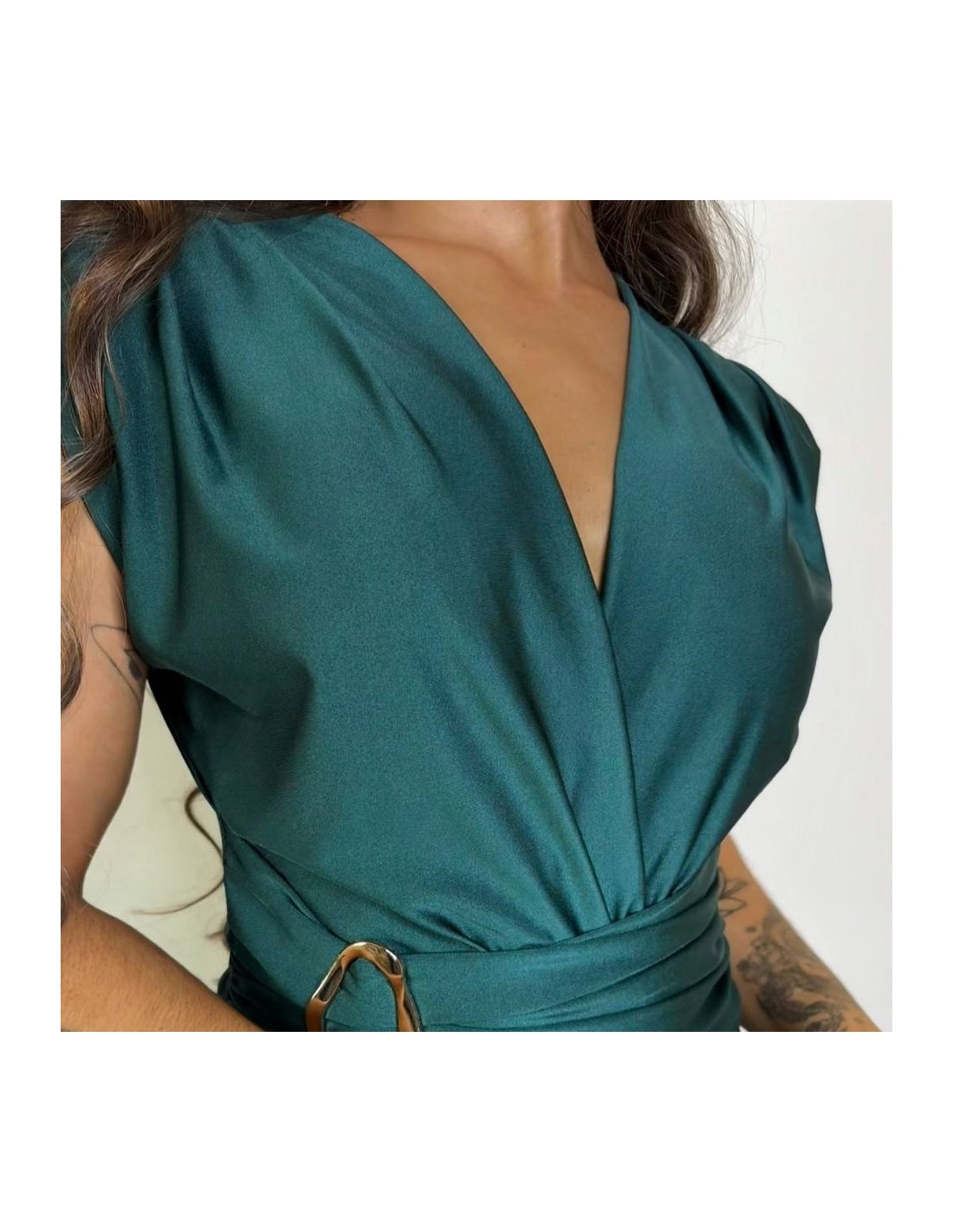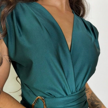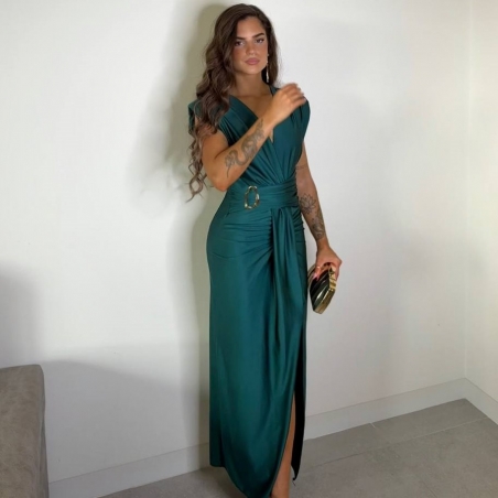 VESTIDO NUDO HEBILLA VERDE ESMERALDA