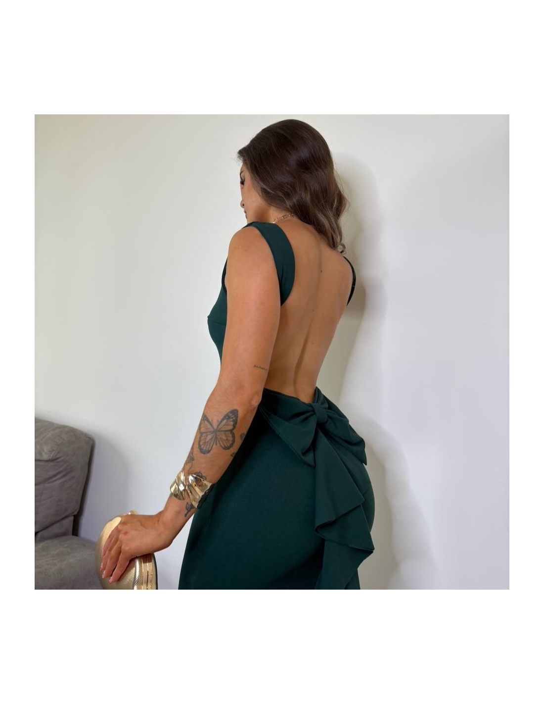 VESTIDO SIRENA LAZO VERDE BOTELLA