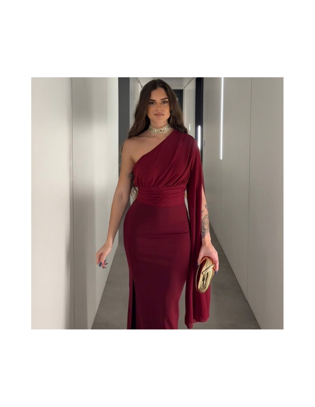 VESTIDO ASIMÉTRICO GASA VINO