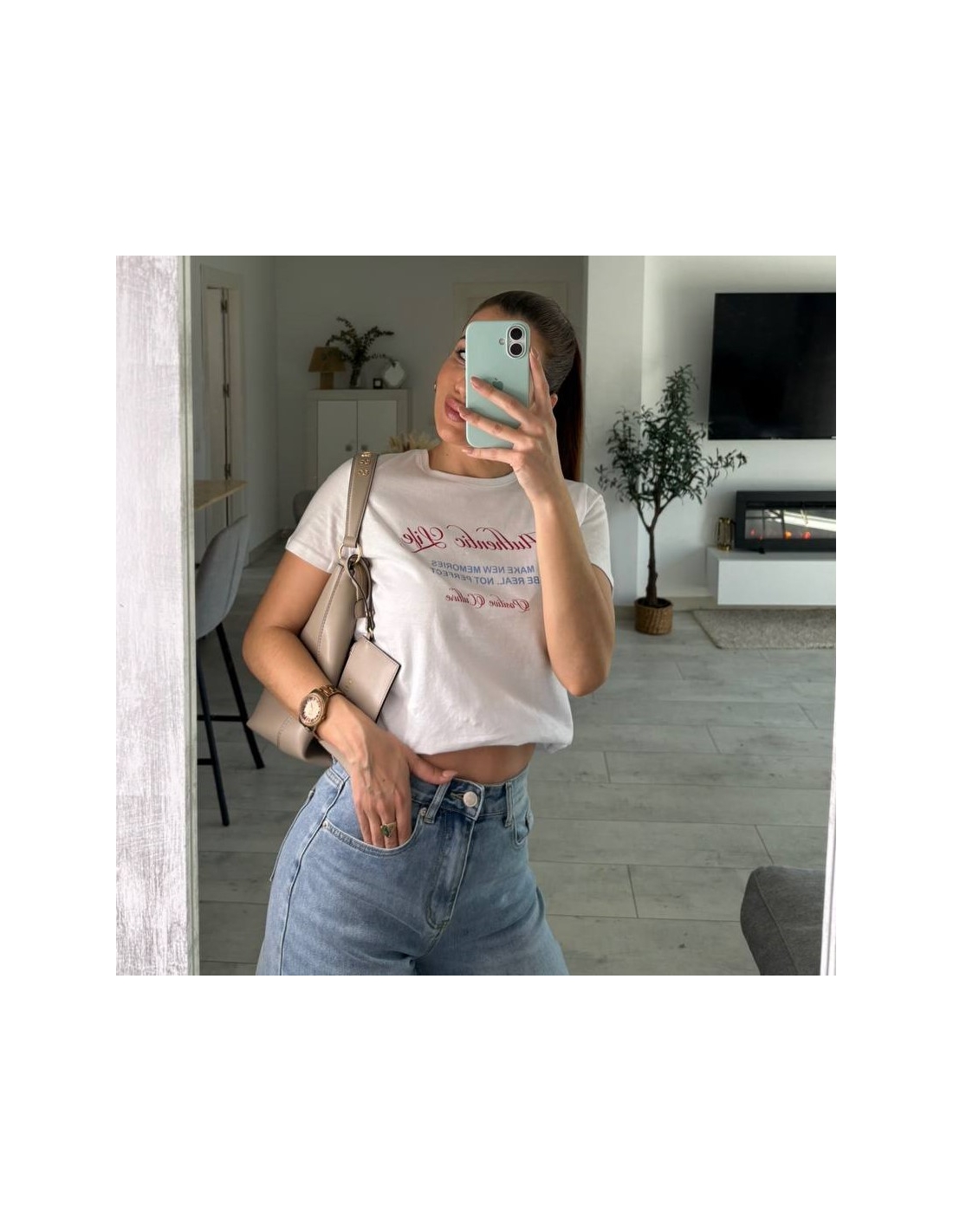 Camiseta de manga corta estampada. Talla única.