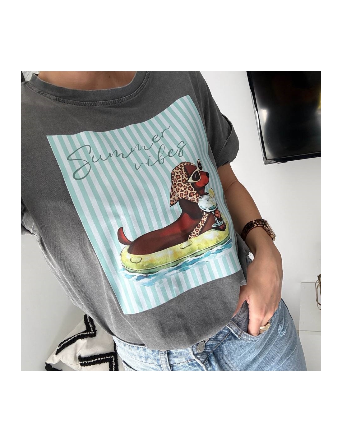 Camiseta de manga corta estampada. Talla única.