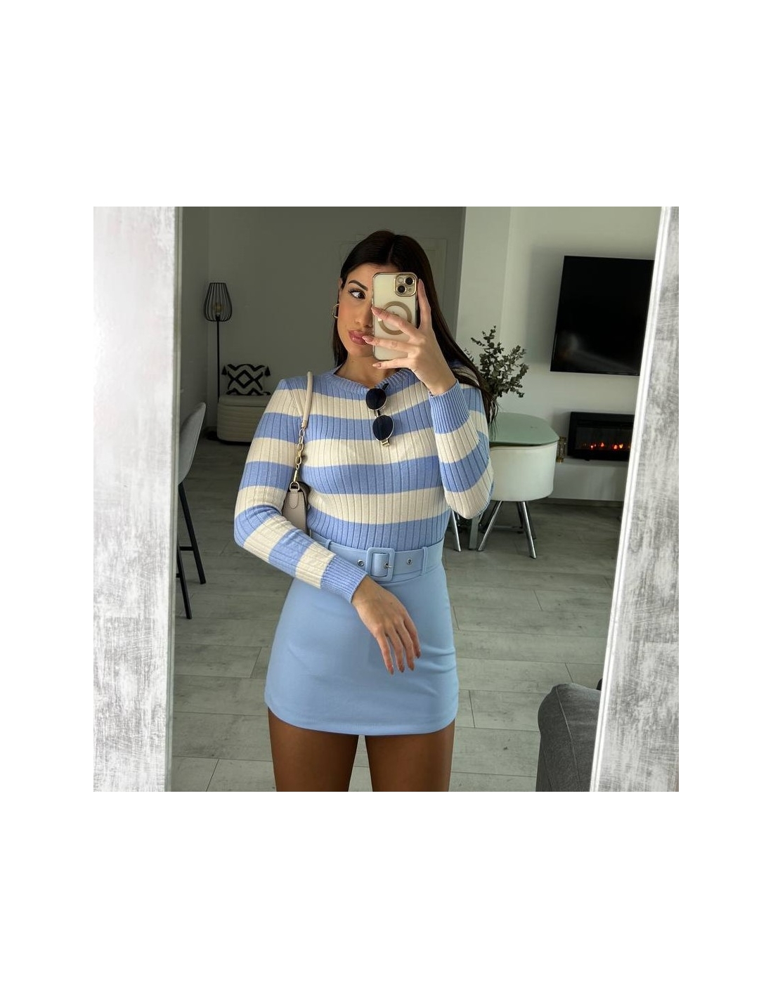 FALDA PANTALÓN CINTURÓN CELESTE