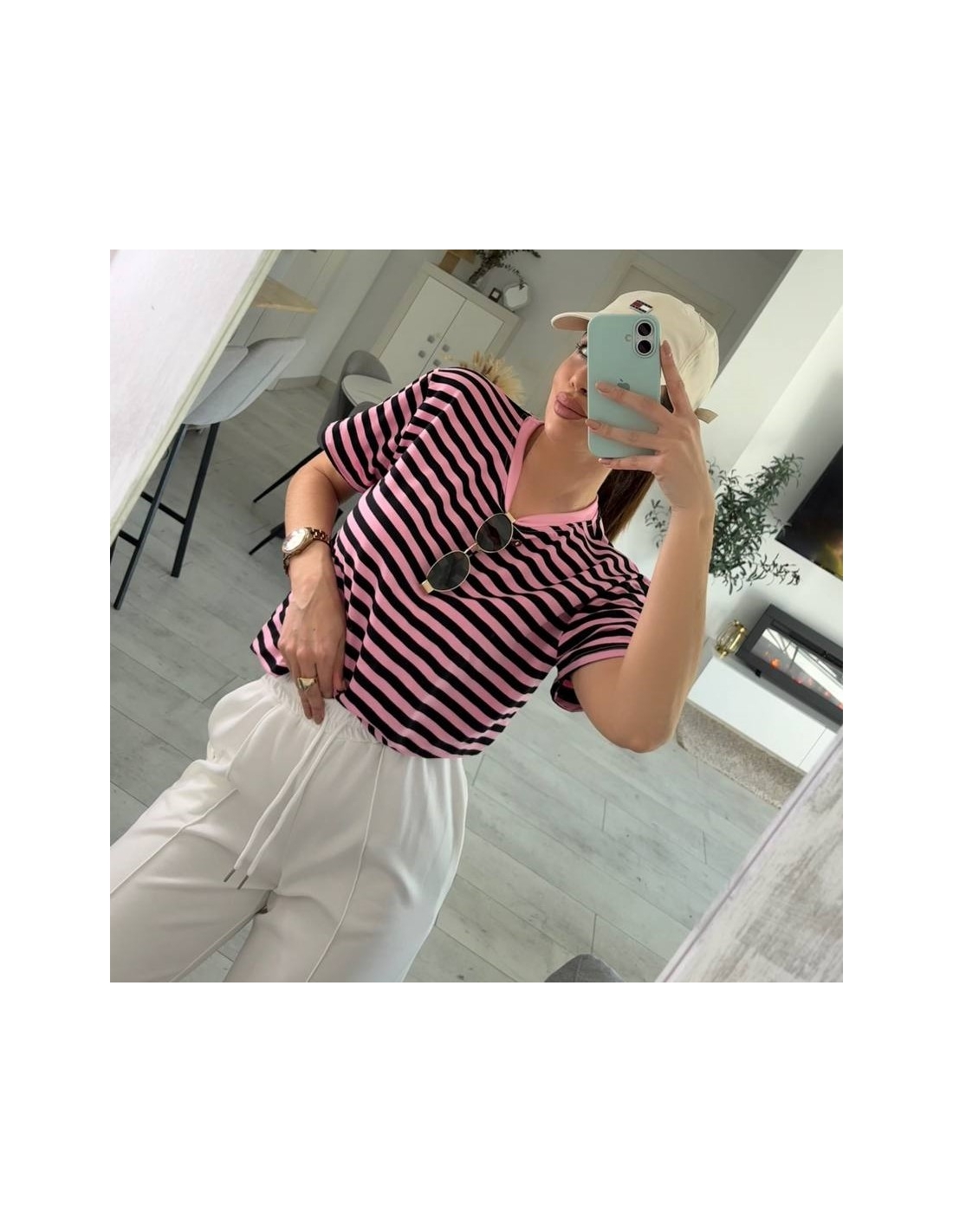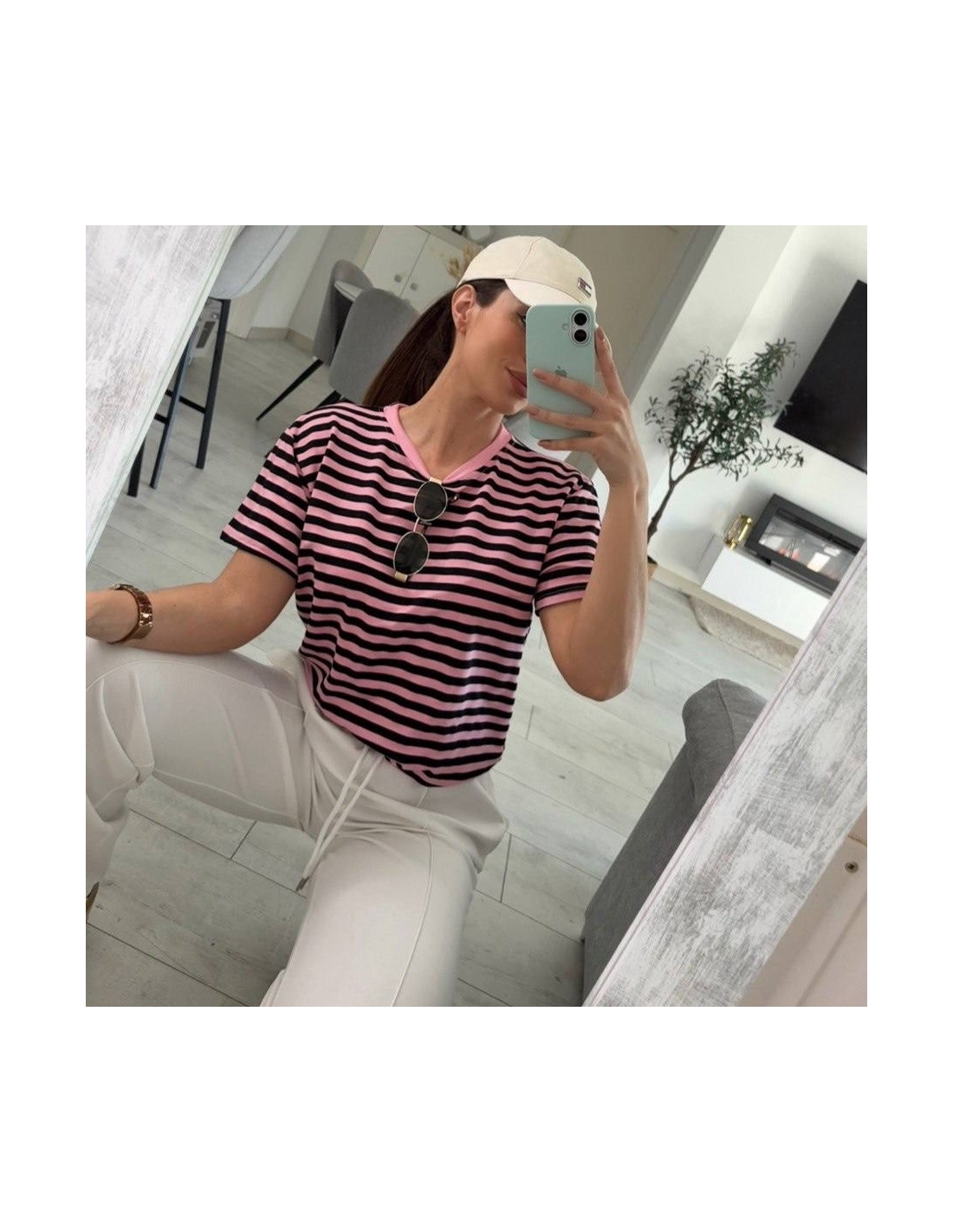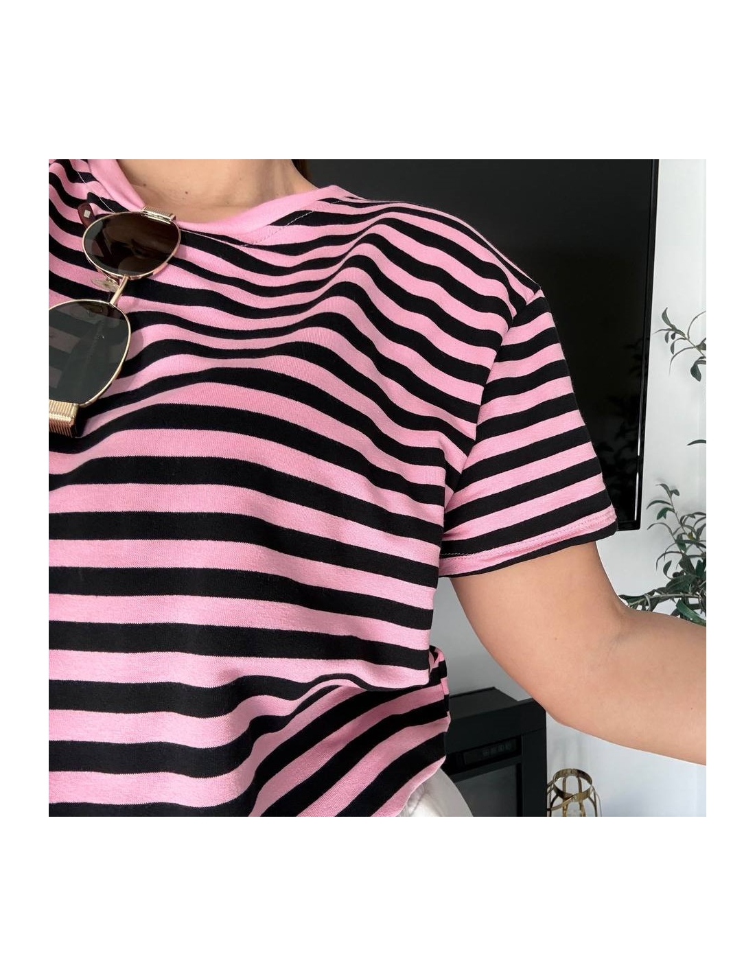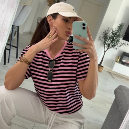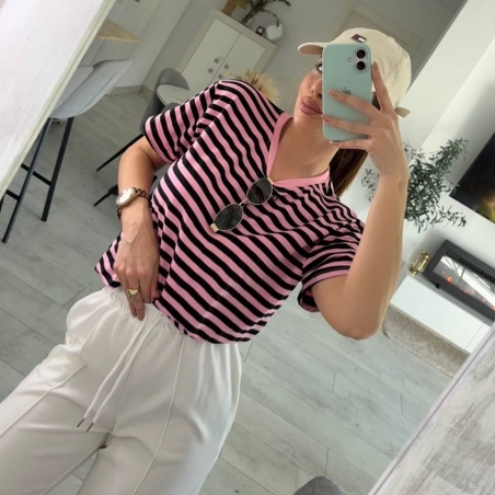 CAMISETA OVER RAYAS ROSITA Y NEGRA