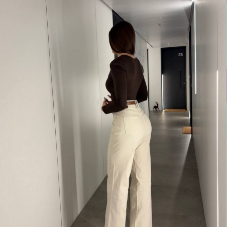 Top hombreras ajustado de manga larga. Escote recto. Doble tejido. Talla única