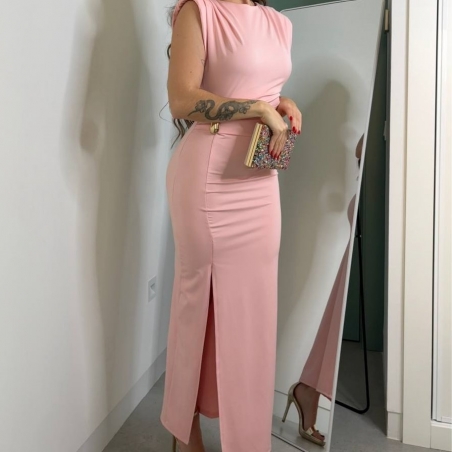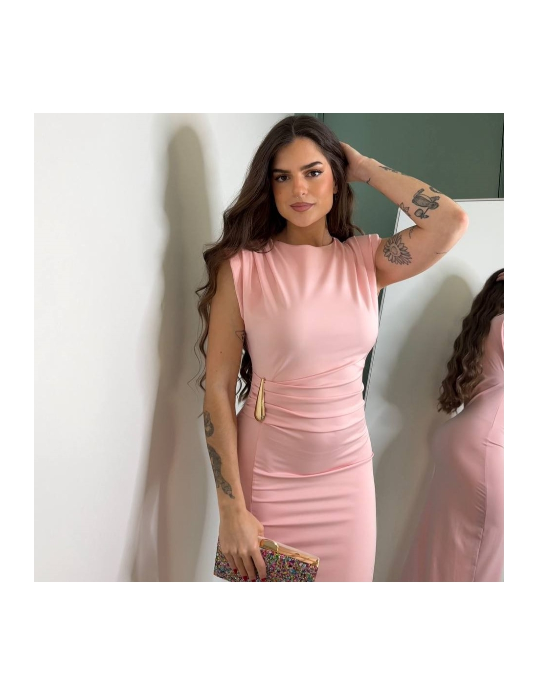 Vestido hombreras lágrima dorada. Con hombreas. Tejido doble licra. Fruncido delantero central. Talla única.