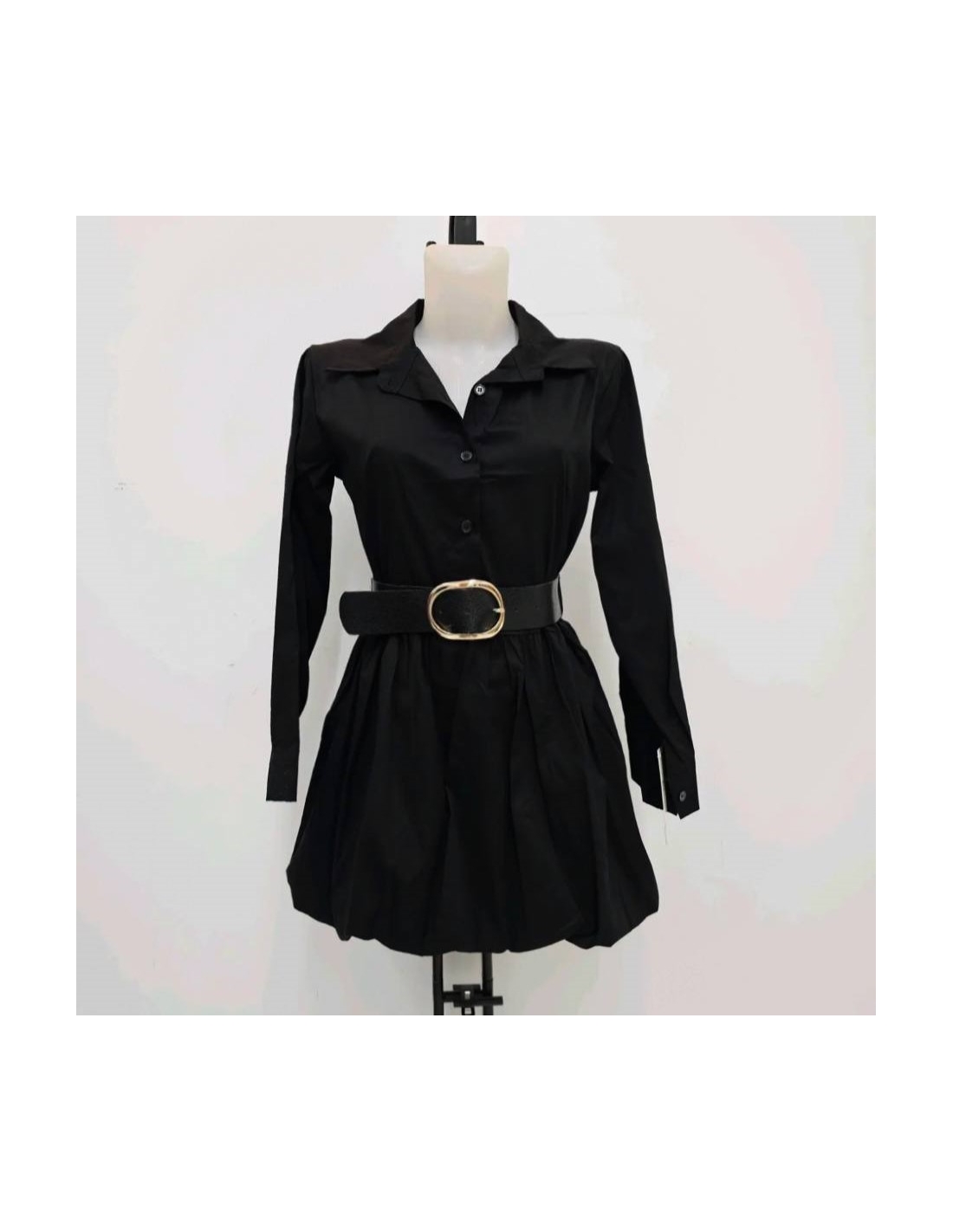 Vestido camisero globo con cinturón incluido. De manga larga. Cierre delantero abotonado. Cuello de solapa. Talla única