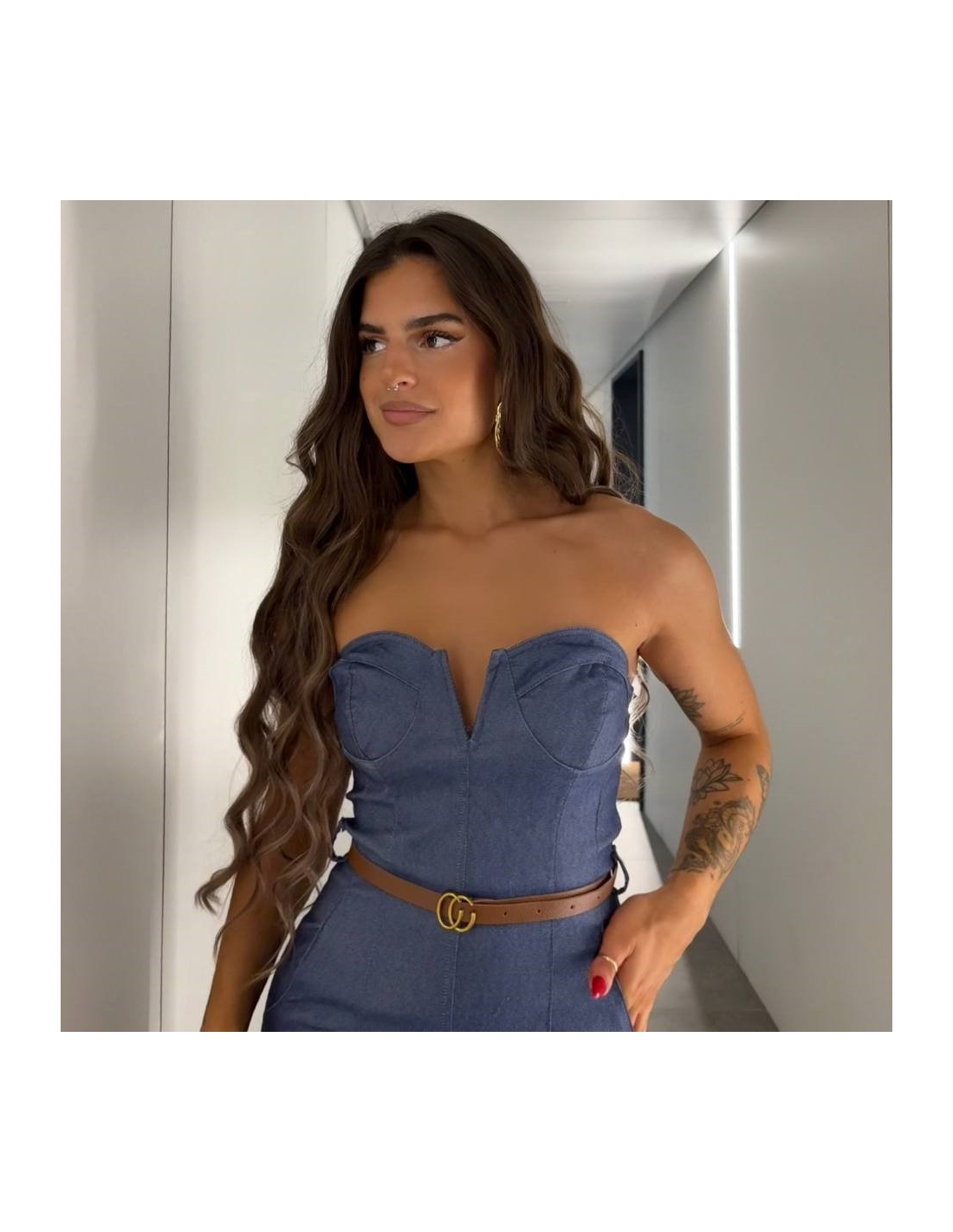 Mono escote v con cinturón incluído. Cremallera trasera oculta. Corte recto. Talla única.