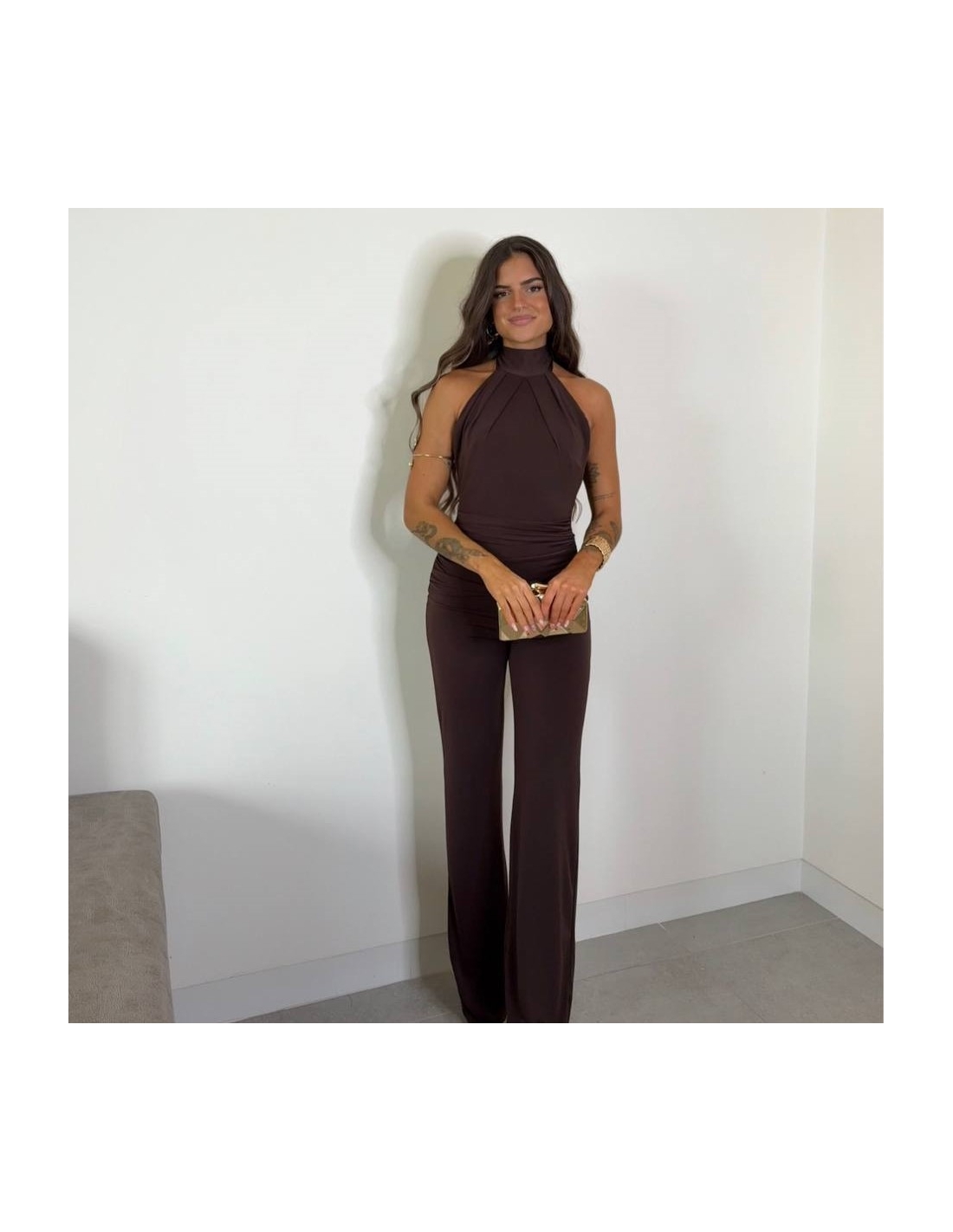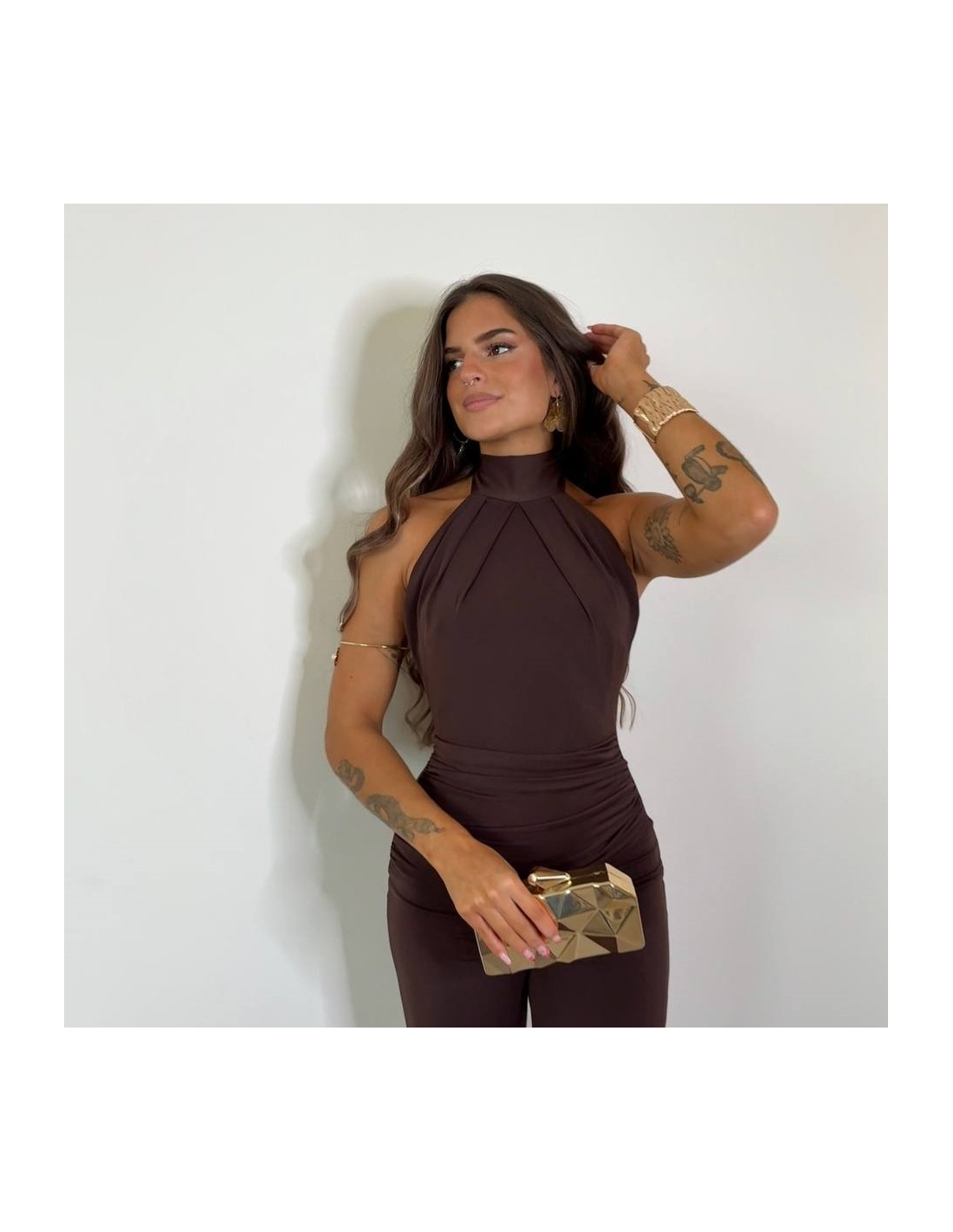 Mono halter de campana. Con lazada regulable en parte trasera a tono. Fruncido en parte delantera. Talla única.