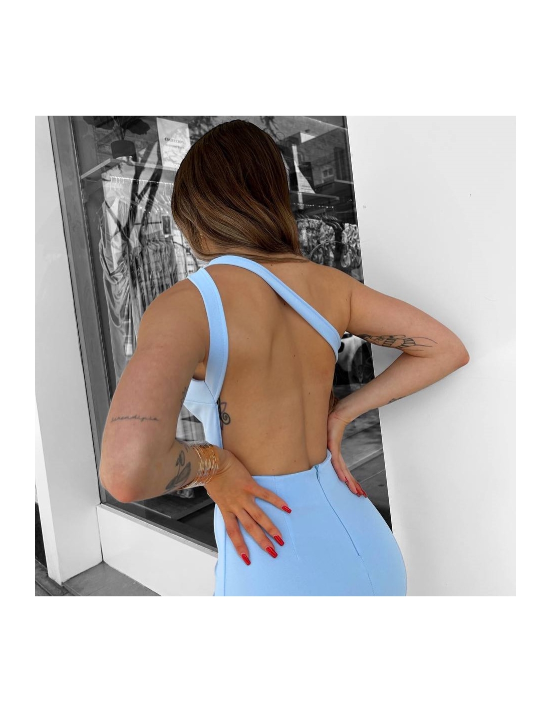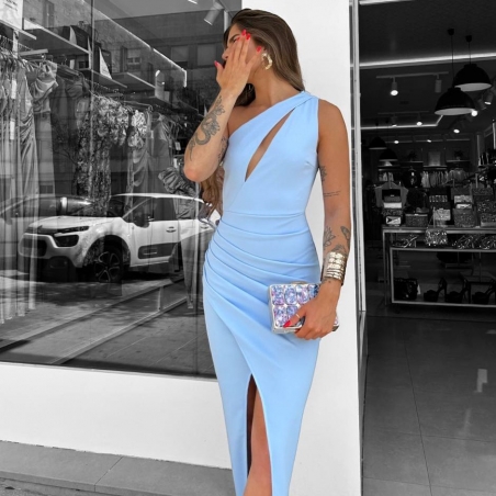 VESTIDO ABERTURAS CELESTE