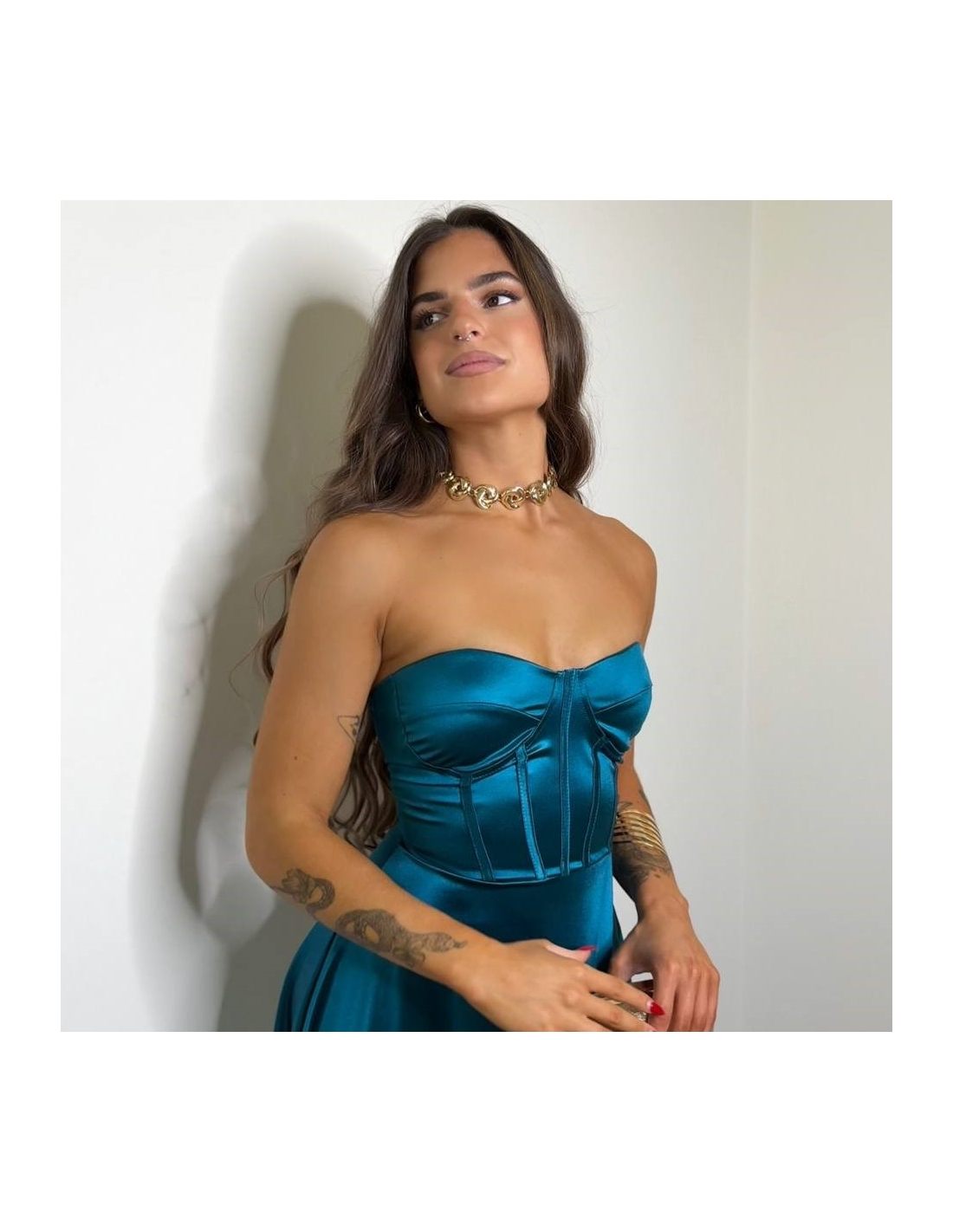 VESTIDO CORSET FLUÍDO PETRÓLEO
