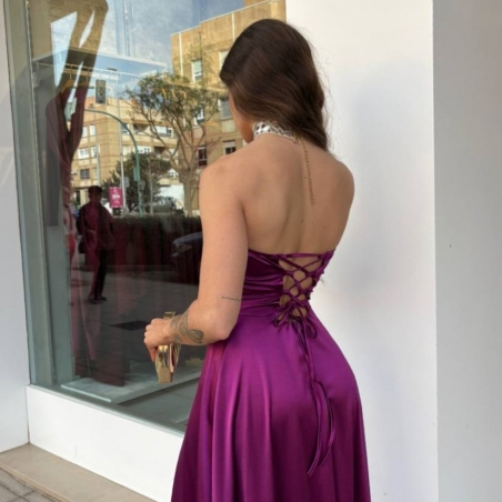 Vestido corset satén. Casco incorporado. Fluido con abertura delantera. Talla única