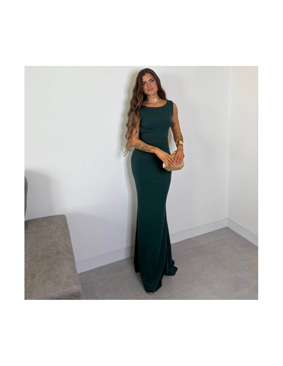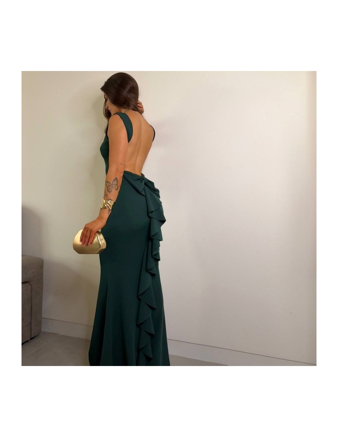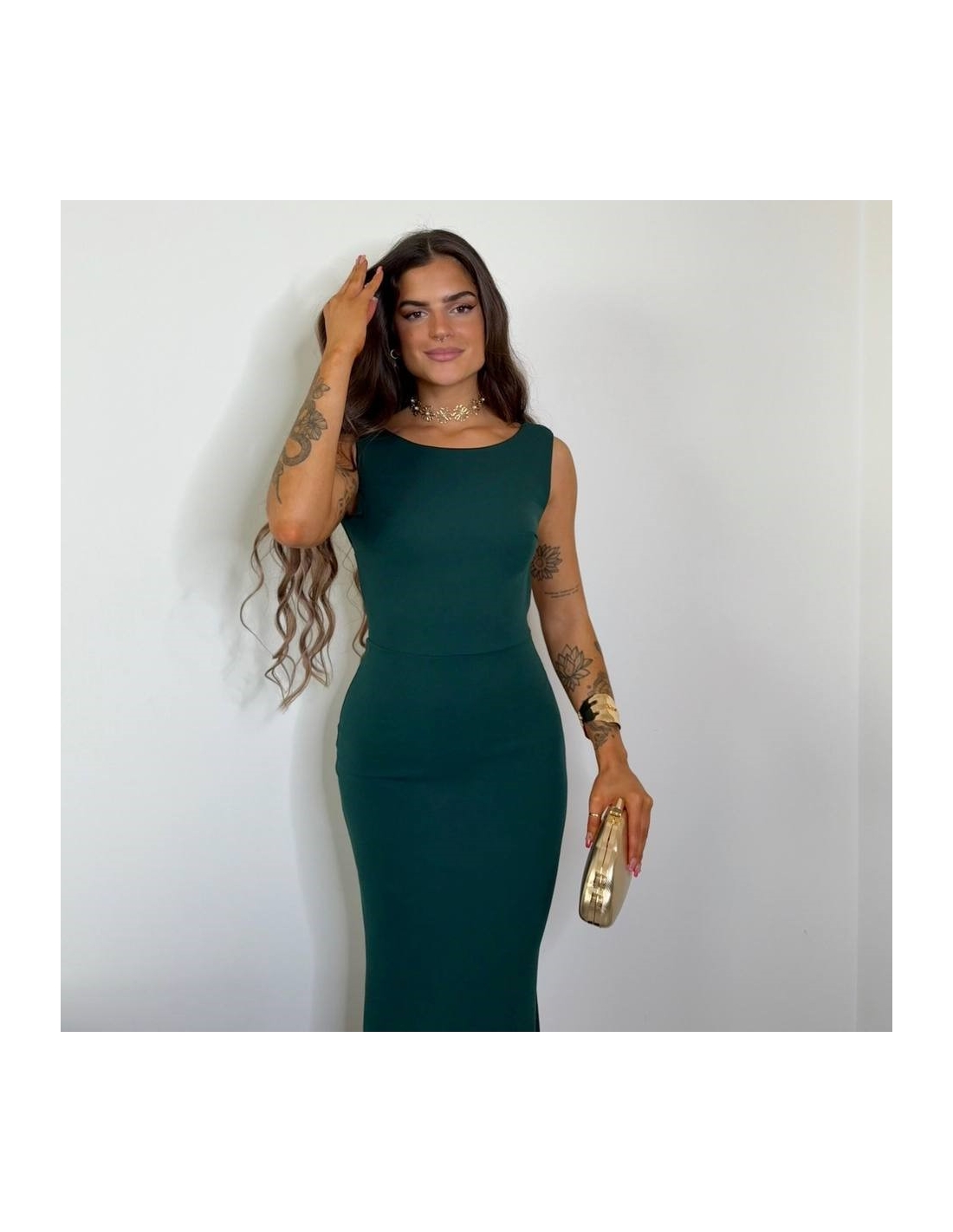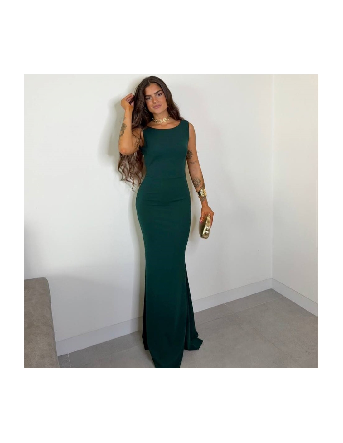 VESTIDO SIRENA LAZO VERDE BOTELLA