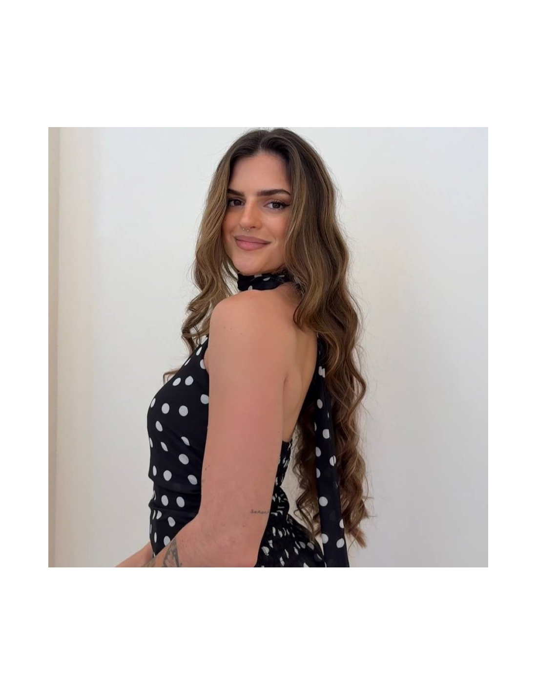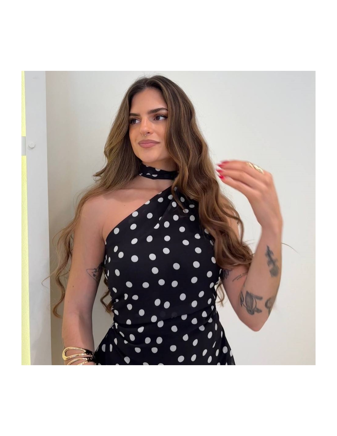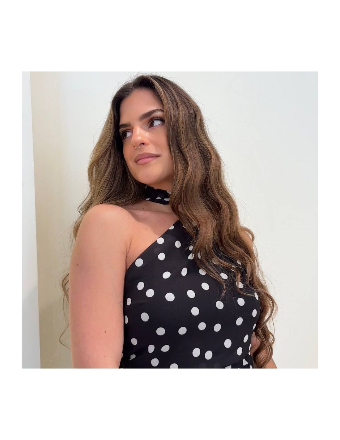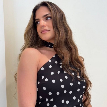 Top gasa lazada de estampado lunares. Parte trasera de panel de abeja elástico. Talla única.