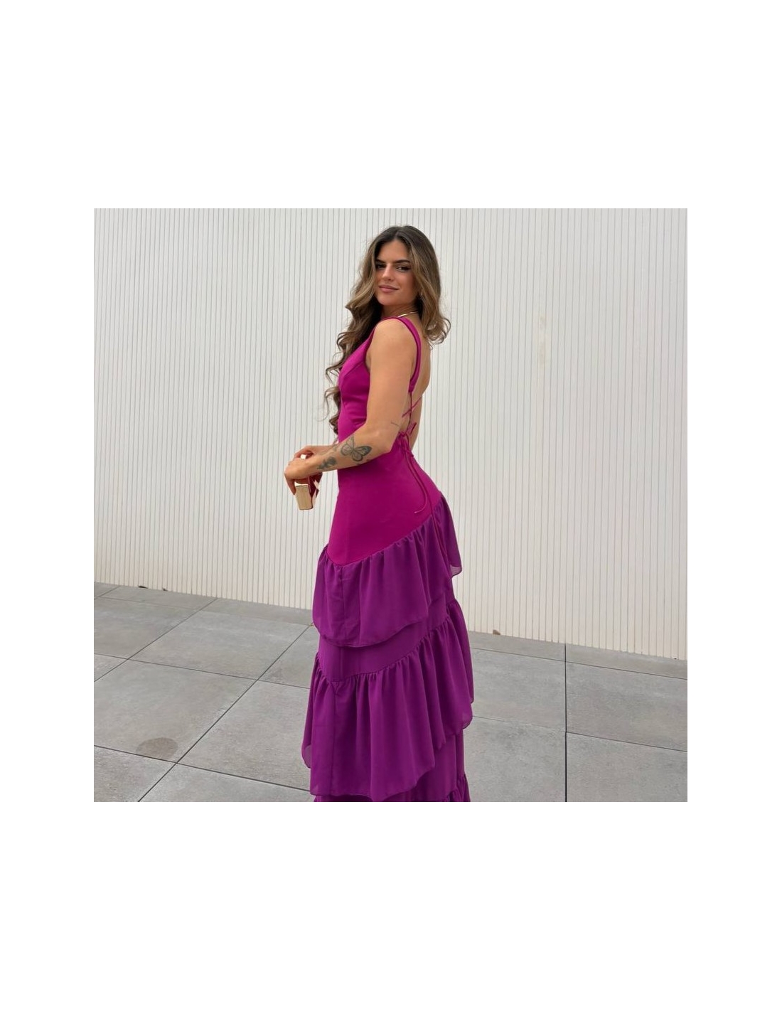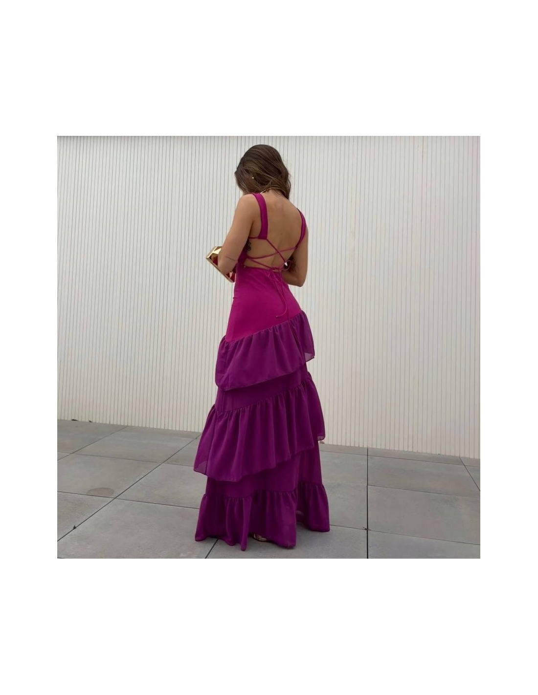 VESTIDO ESPALDA CRUZADA VOLANTES BUGANVILLA