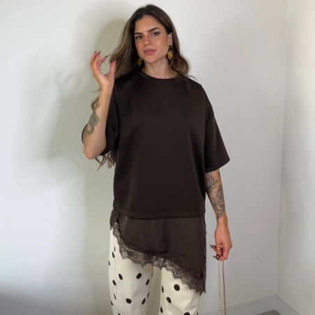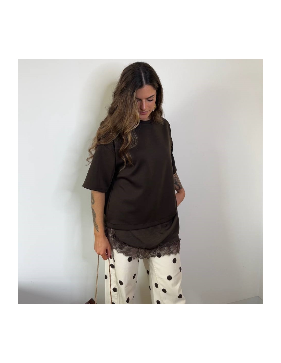 Camiseta vestido de manga corta. De corte asimétrico. Cuello redondo. Over. Talla única