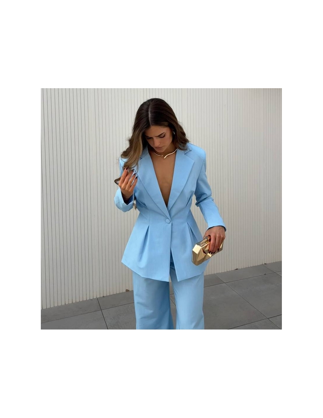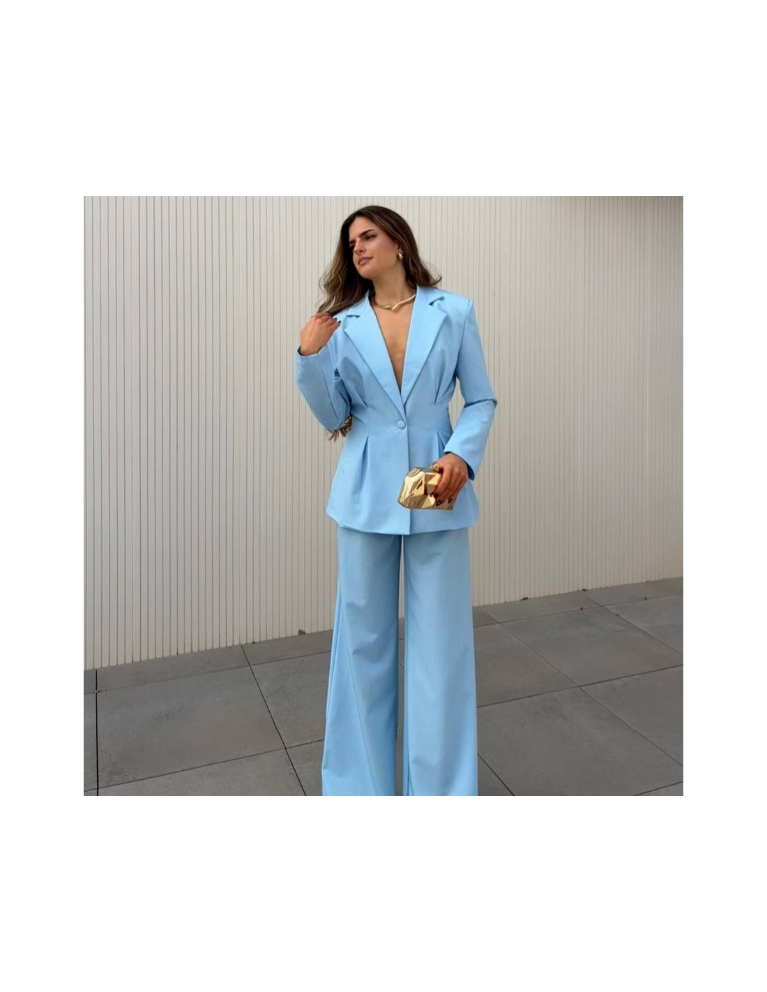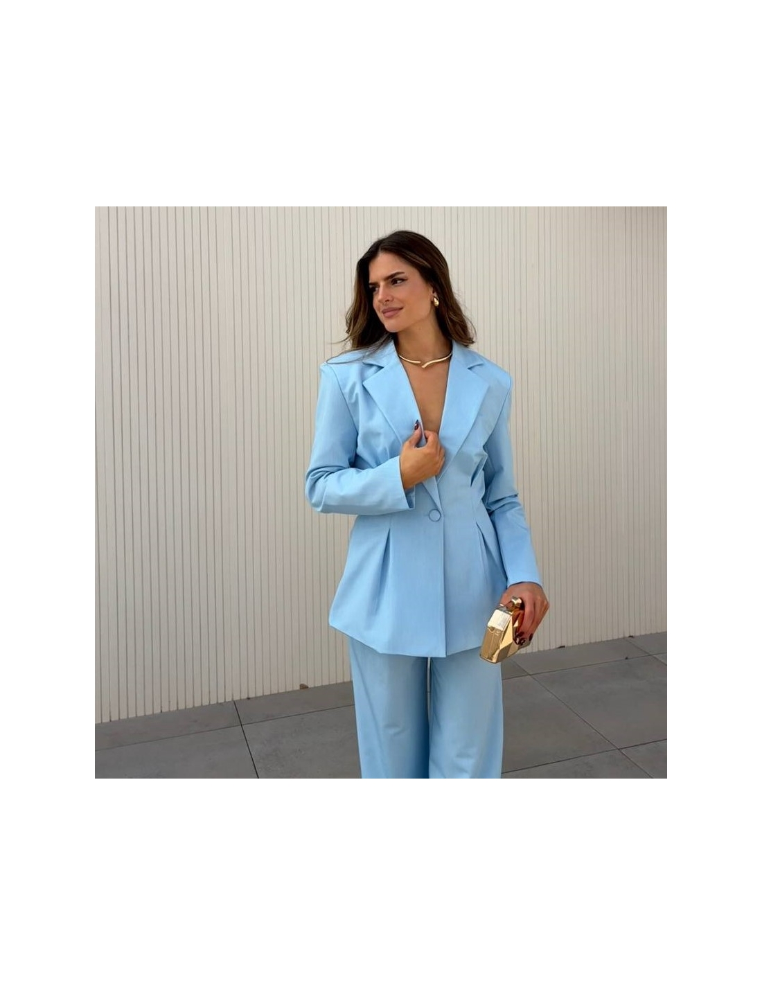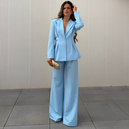 Conjunto traje dos piezas blazer con hombreras y pinzas entallada en la cintura y abotonada + pantalón de tiro alto y cintura elástica. Talla única. CALIDAD +++++