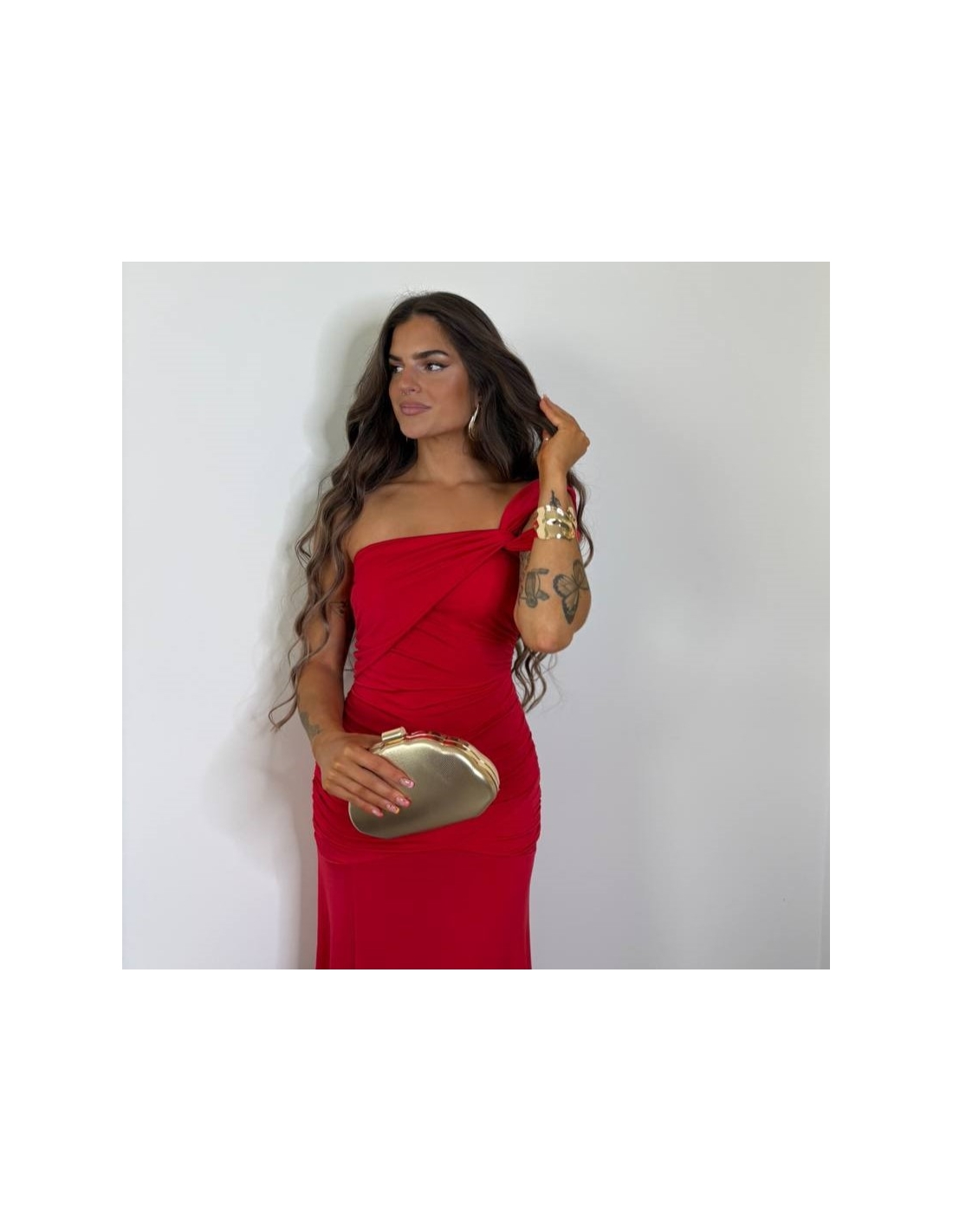 Vestido bella largo. Escote asimétrico. Fruncido en parte central. Fluido en bajo. Doble tejido. Talla única