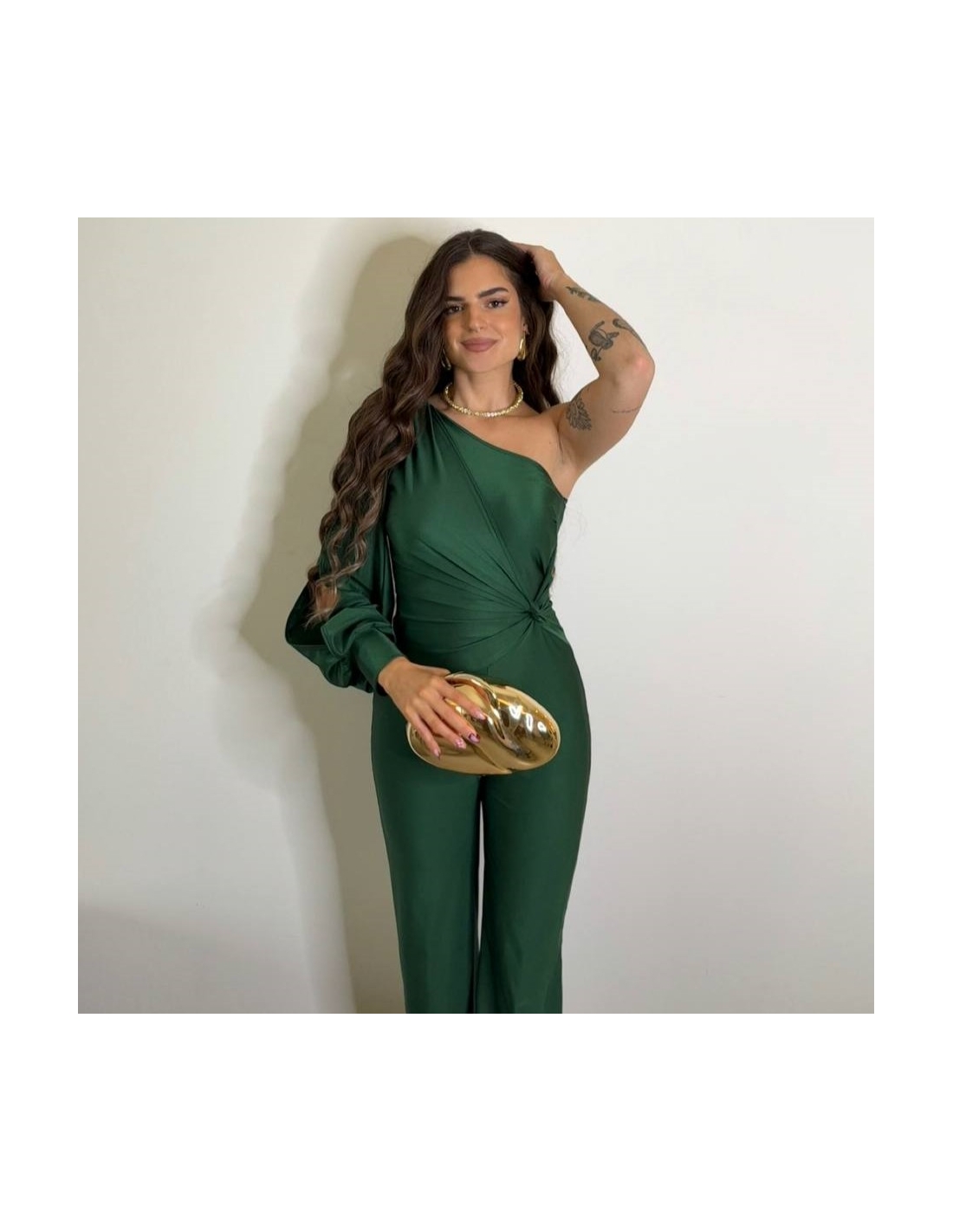 Mono asimétrico nudo. Tejido acabado satinado elástico. Abertura en manga. Cierre trasero con cremallera oculta. Talla única.