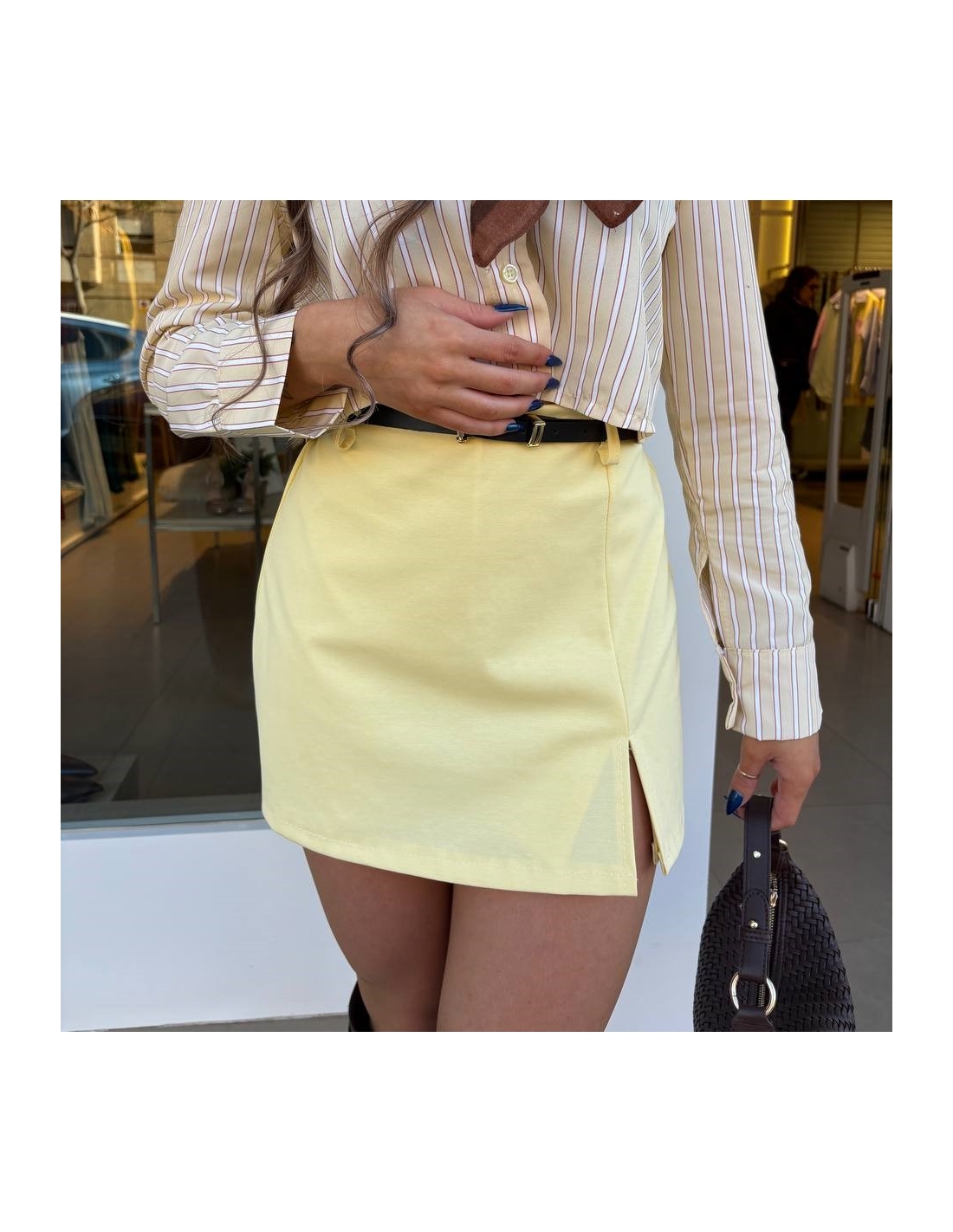 FALDA PANTALÓN CINTURÓN AMARILLA