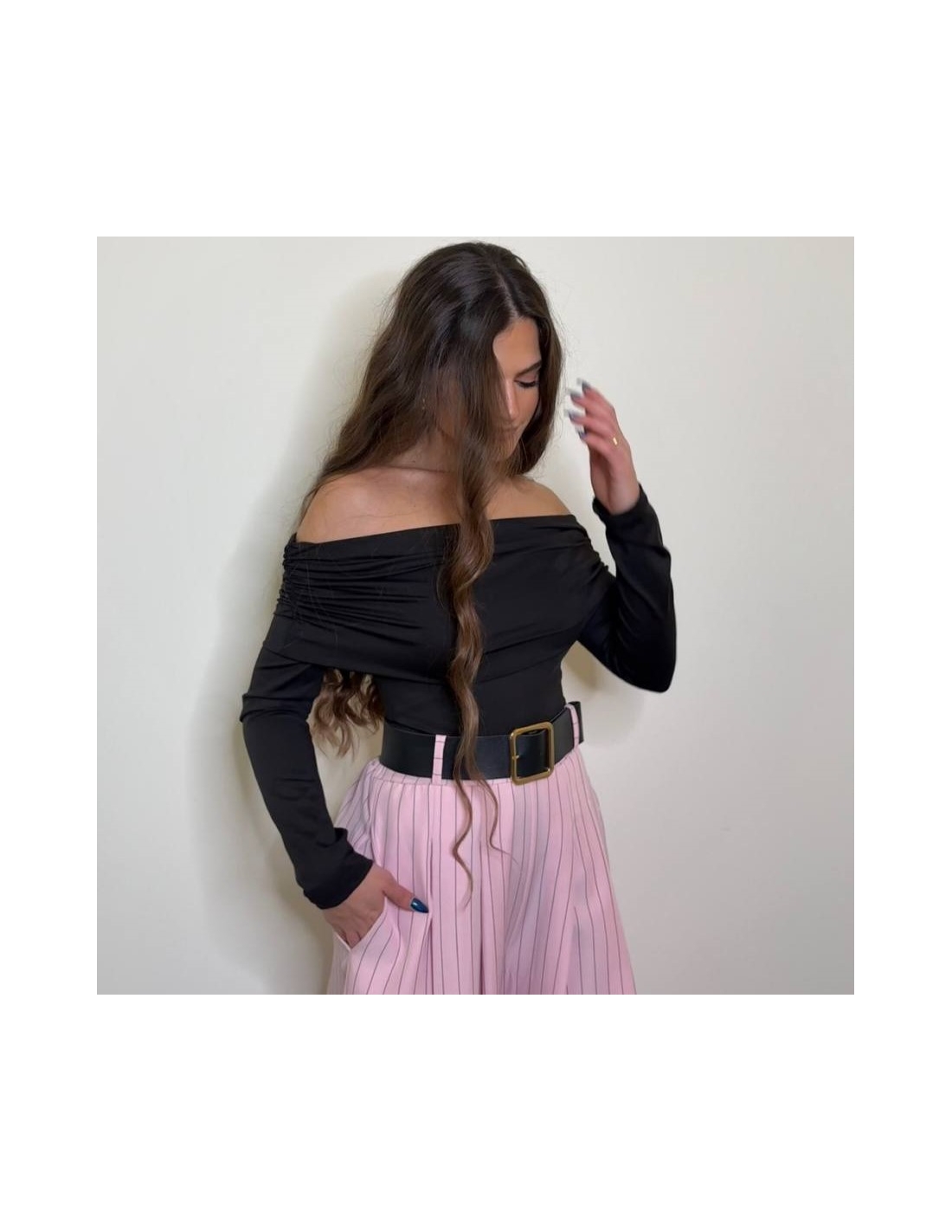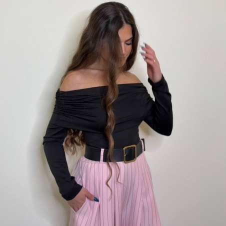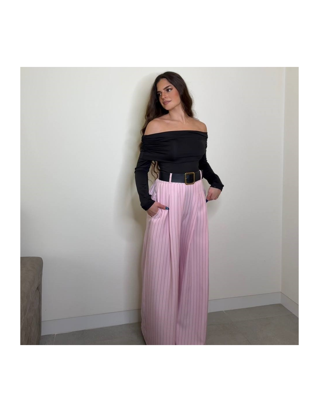 Pantalón palazzo. De tiro alto. Cintura elástica. Cinturón incluído. Talla única